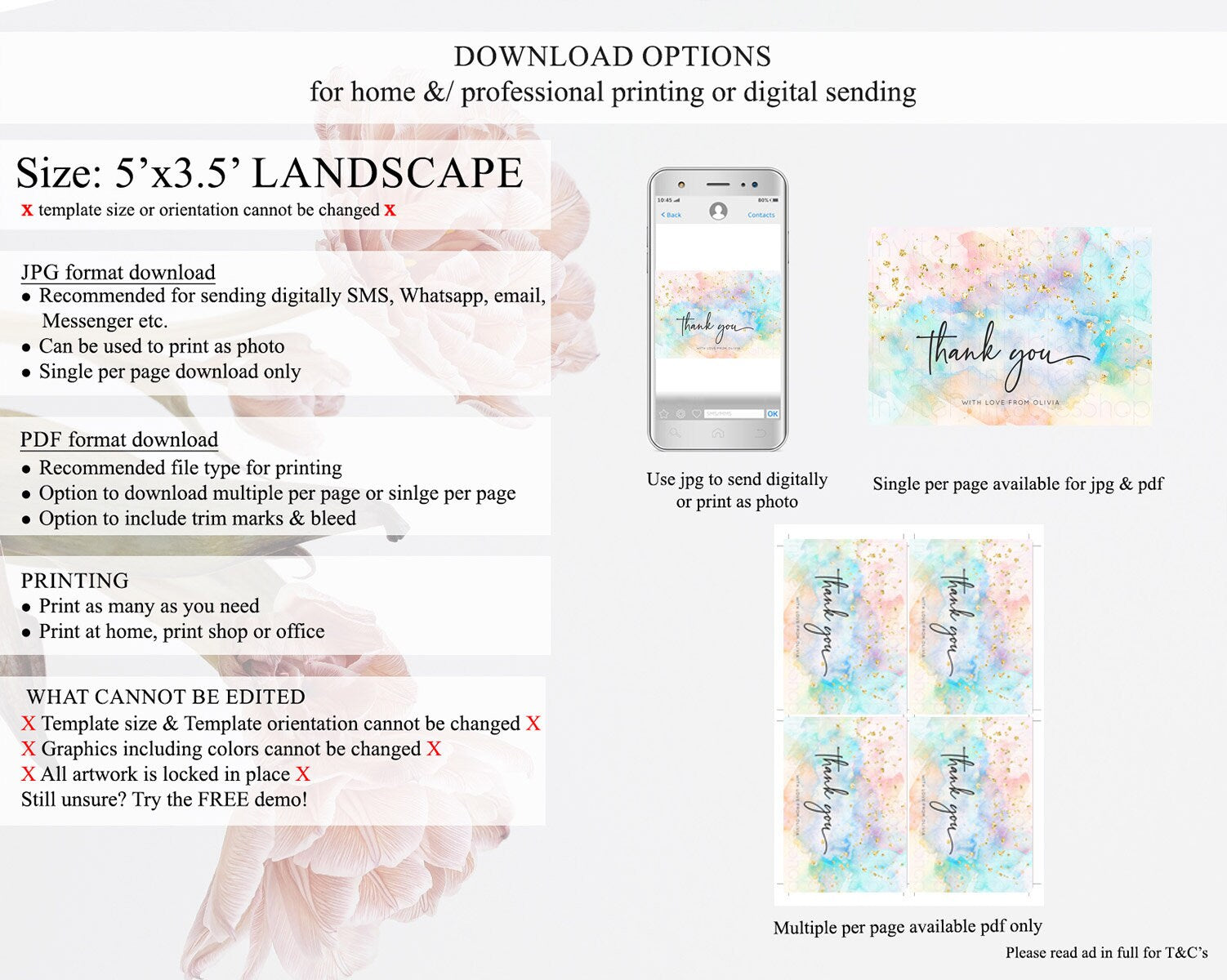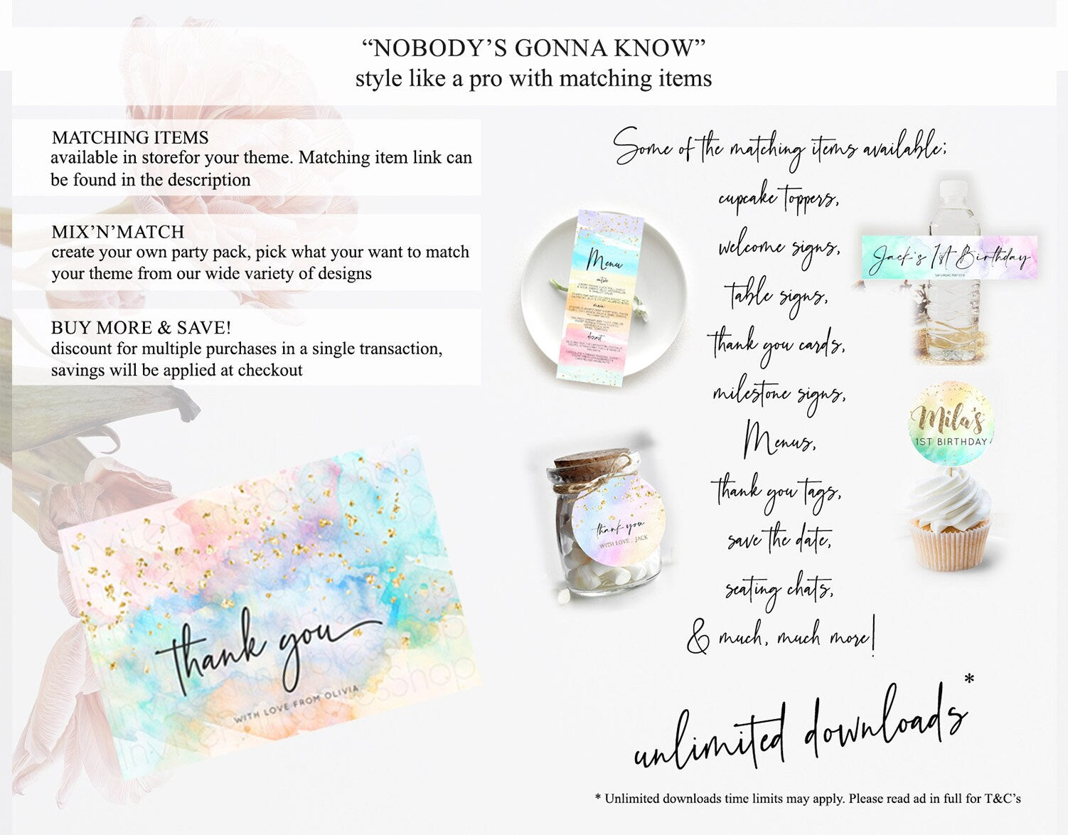 Pastel Thank You Rainbow Thank You Card Colorful Pastel Birthday Thank You Card Confetti Watercolor Pastel Teacher Thank You Cards D10260