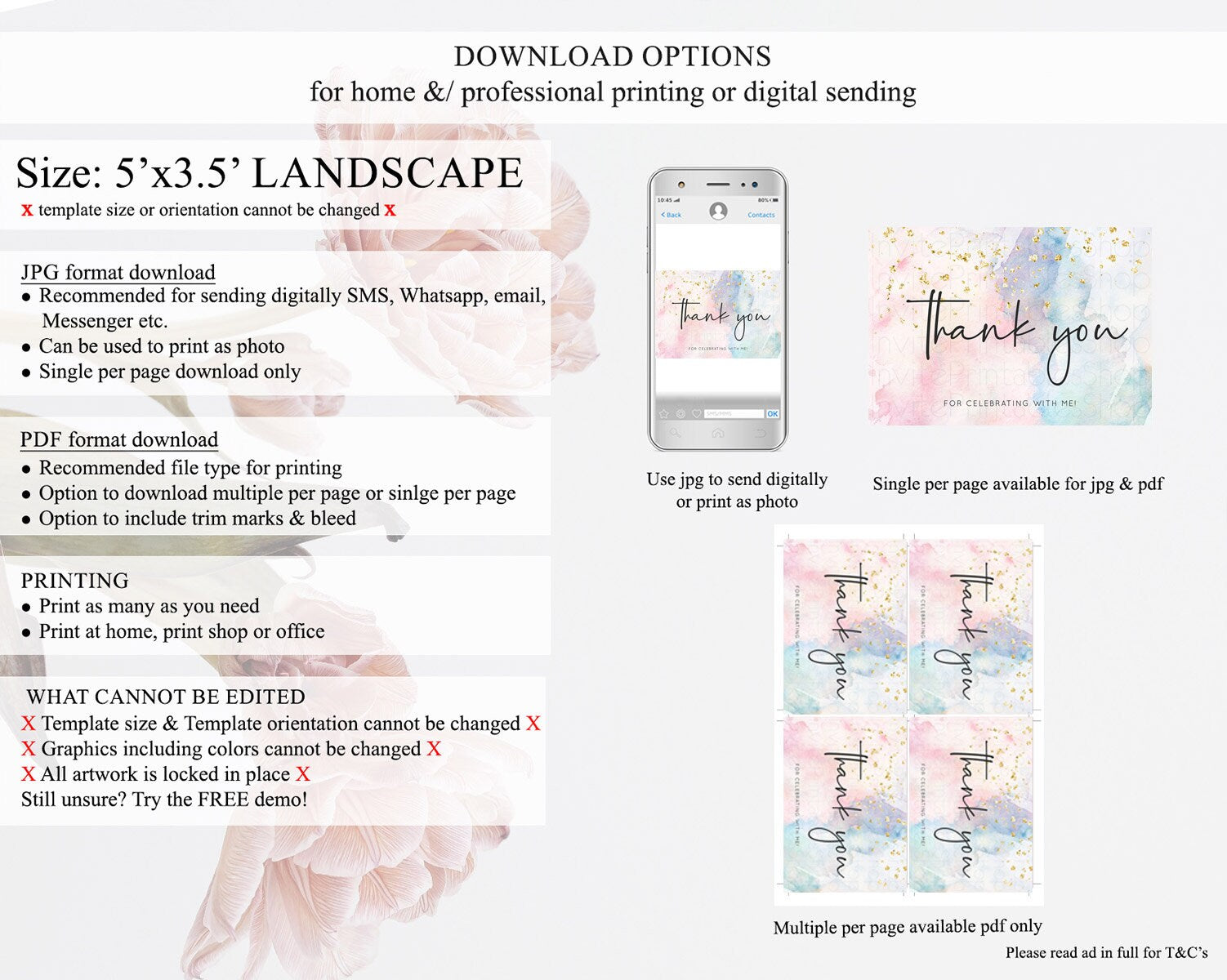 Pastel Thank You Rainbow Thank You Card Colorful Pastel Birthday Thank You Card Confetti Watercolor Pastel Teacher Thank You Cards D10263
