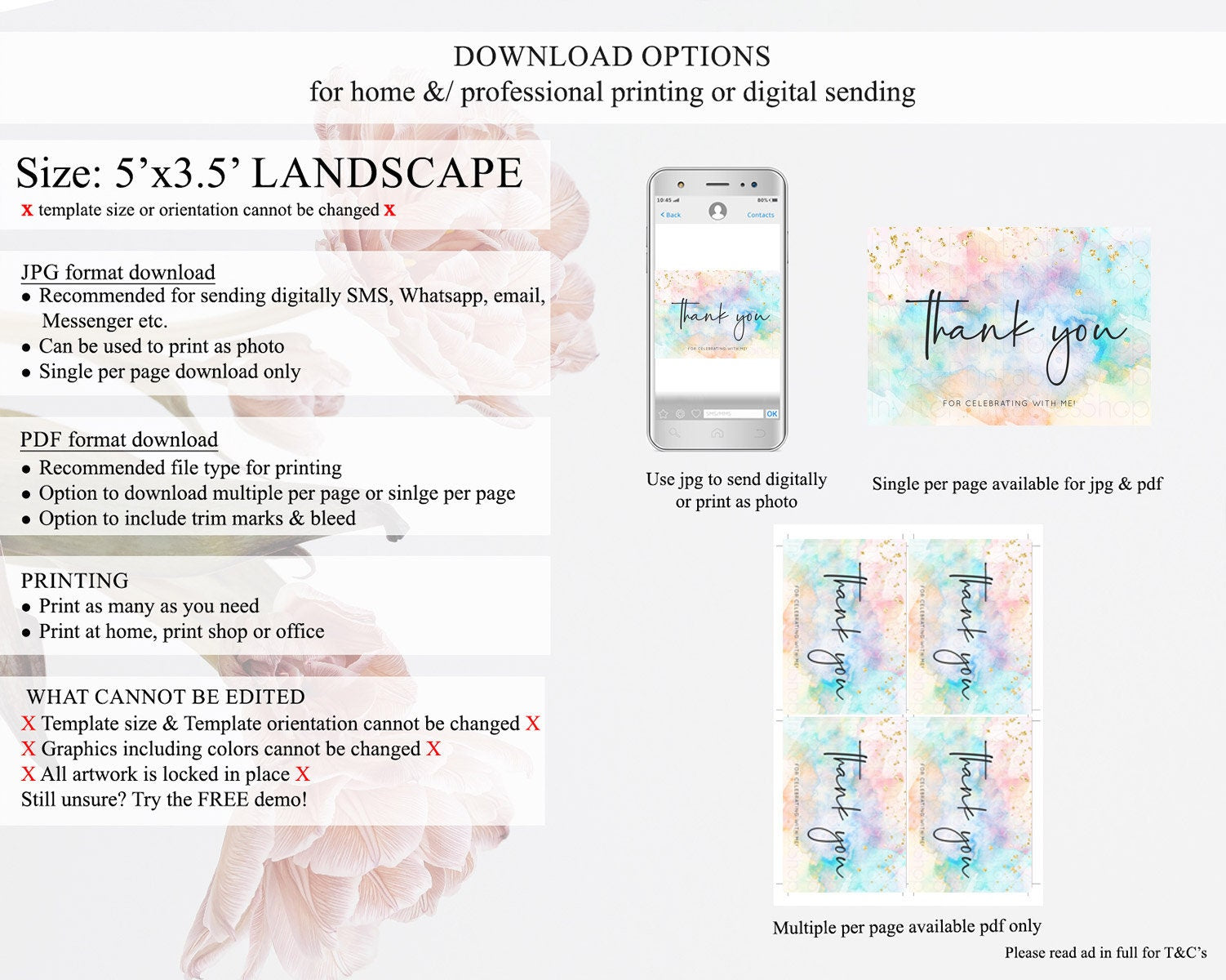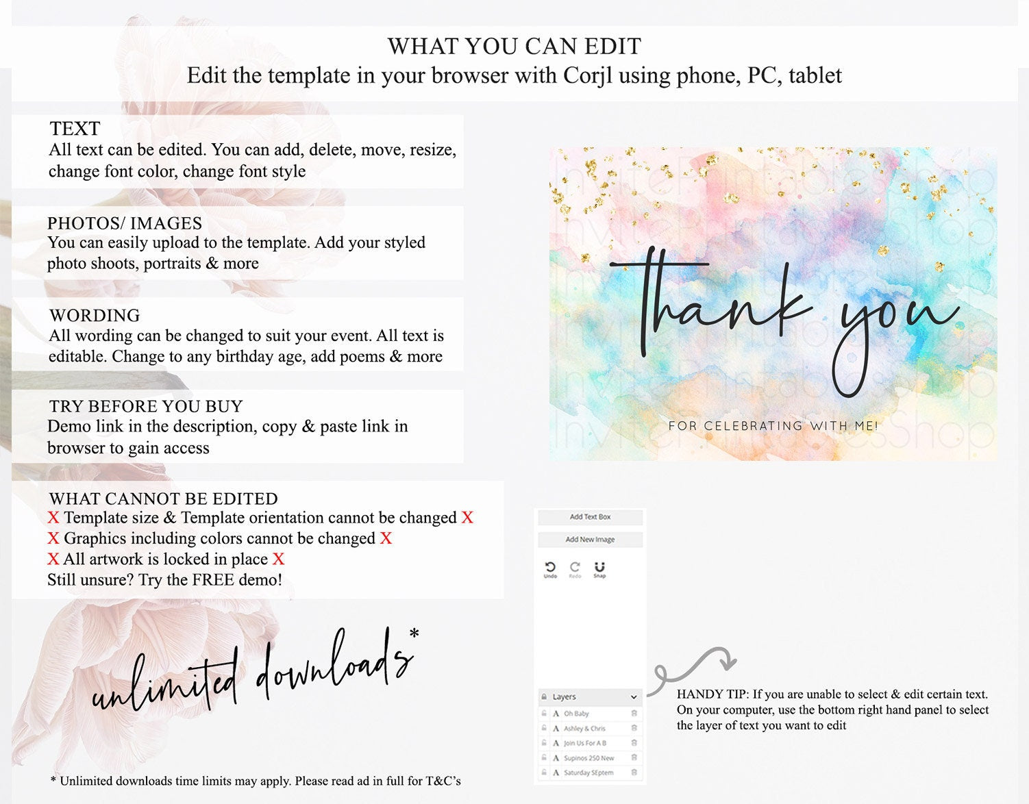 Pastel Thank You Rainbow Thank You Card Colorful Pastel Birthday Thank You Card Confetti Watercolor Pastel Teacher Thank You Cards D10266