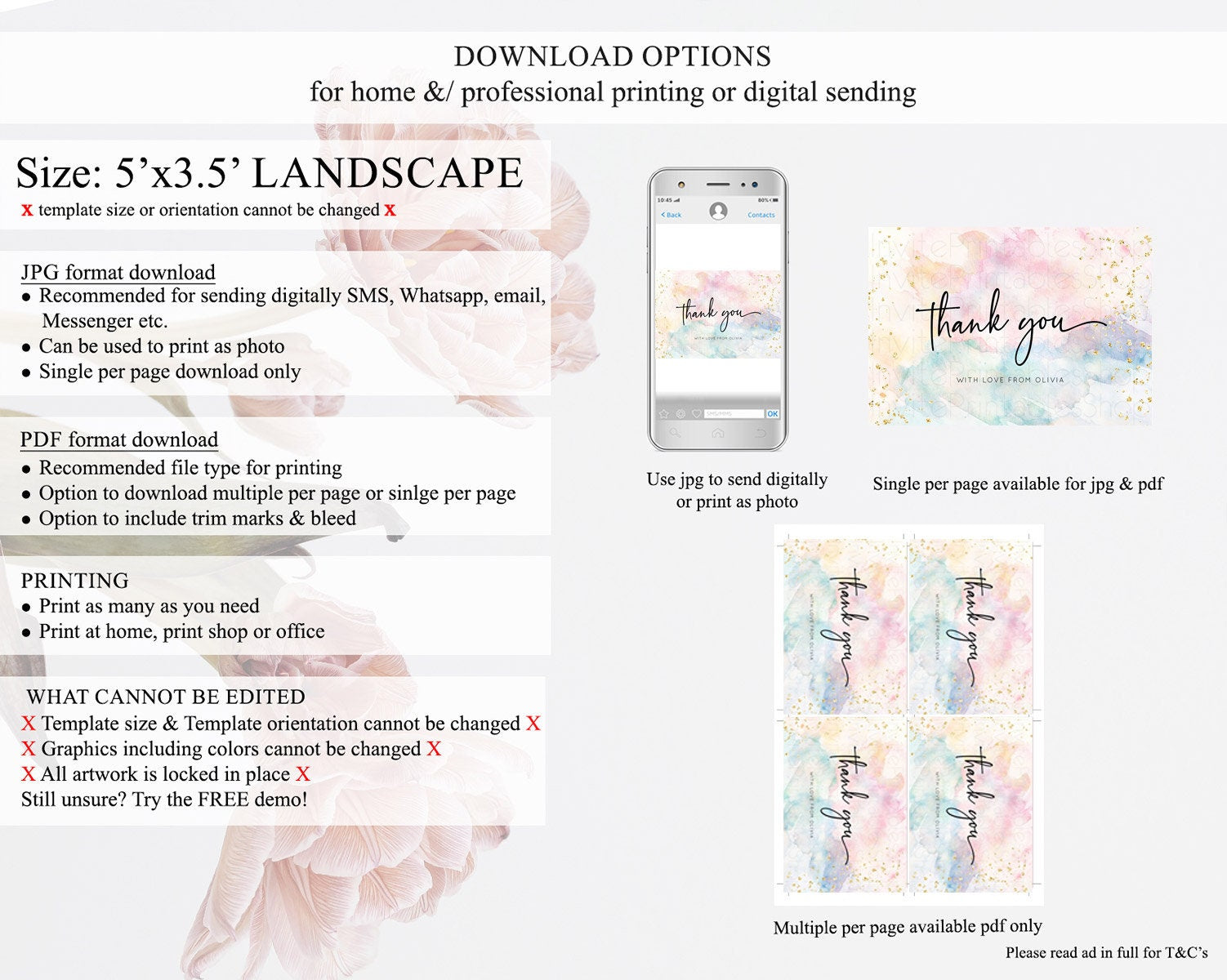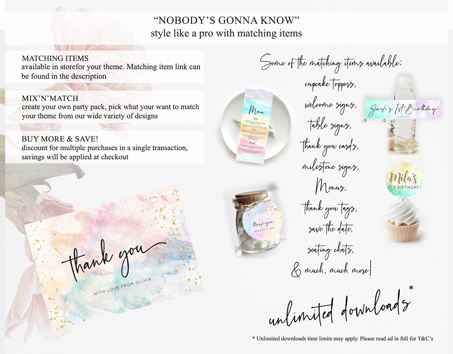 Pastel Thank You Rainbow Thank You Card Colorful Pastel Birthday Thank You Card Confetti Watercolor Pastel Teacher Thank You Cards D10276