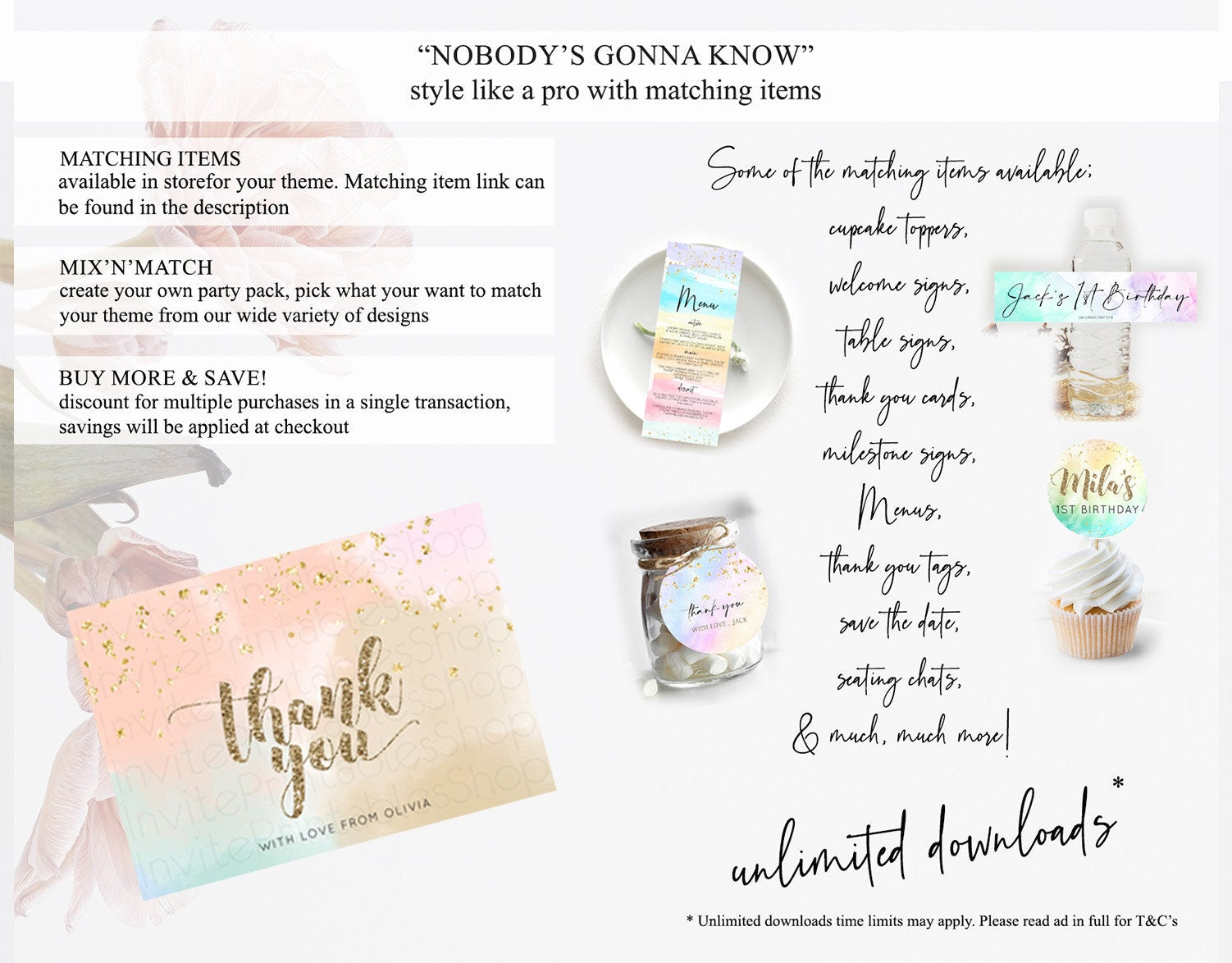 Pastel Thank You Rainbow Thank You Card Colorful Pastel Birthday Thank You Card Confetti Watercolor Pastel Teacher Thank You Cards D10377