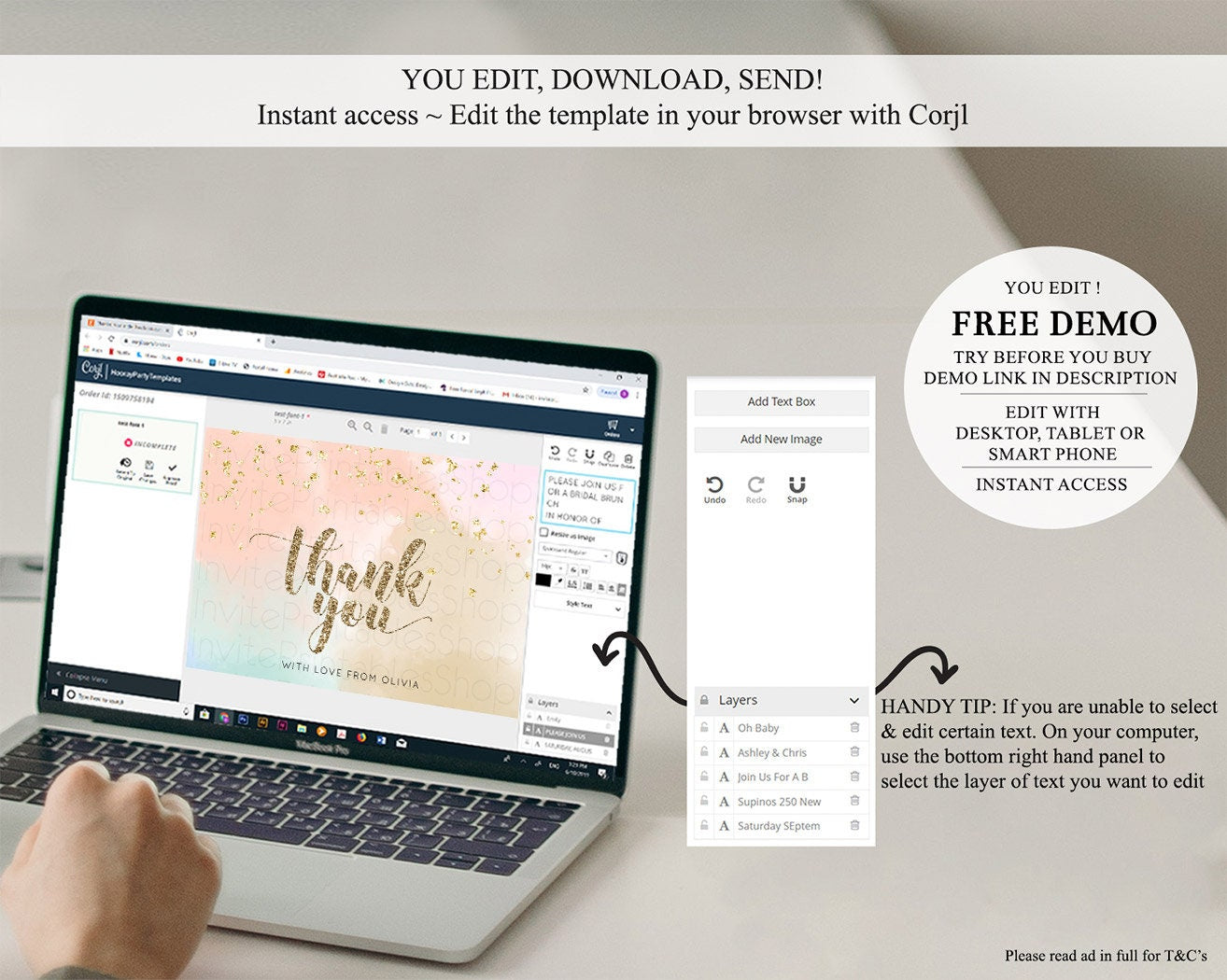 • After purchase, Corjl emails your editing link. Allow up to 15 minutes for delivery.