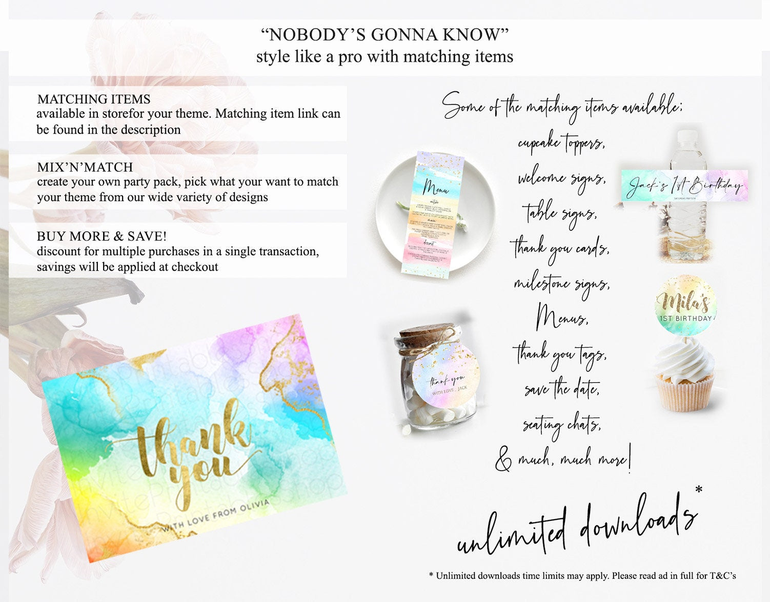 Pastel Thank You Rainbow Thank You Card Colorful Pastel Birthday Thank You Card Confetti Watercolor Pastel Teacher Thank You Cards D10392