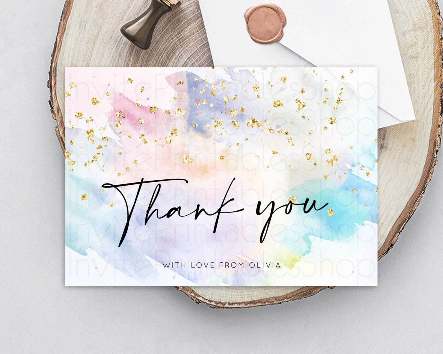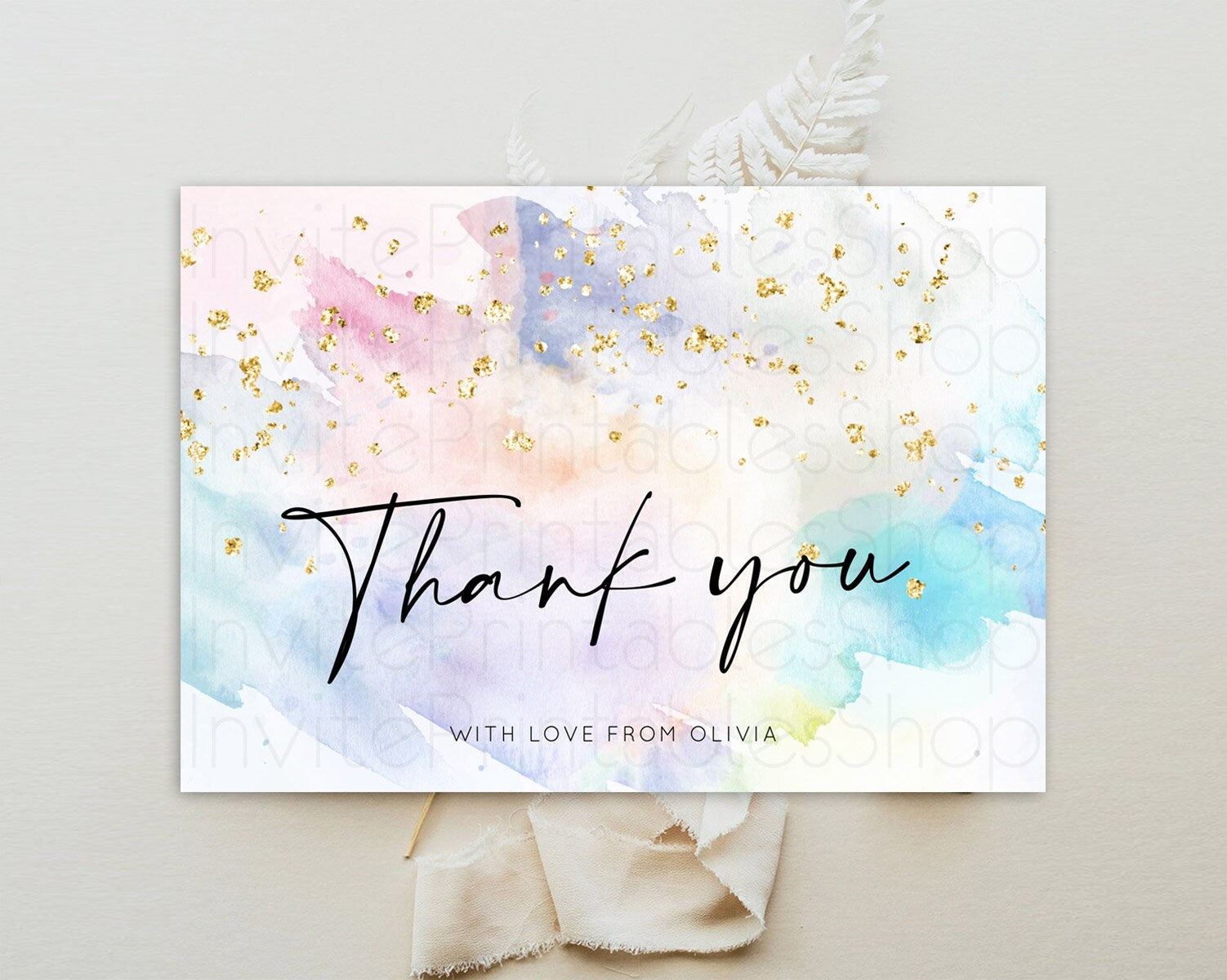 Pastel Thank You Rainbow Thank You Card Colorful Pastel Birthday Thank You Card Confetti Watercolor Pastel Teacher Thank You Cards D10420