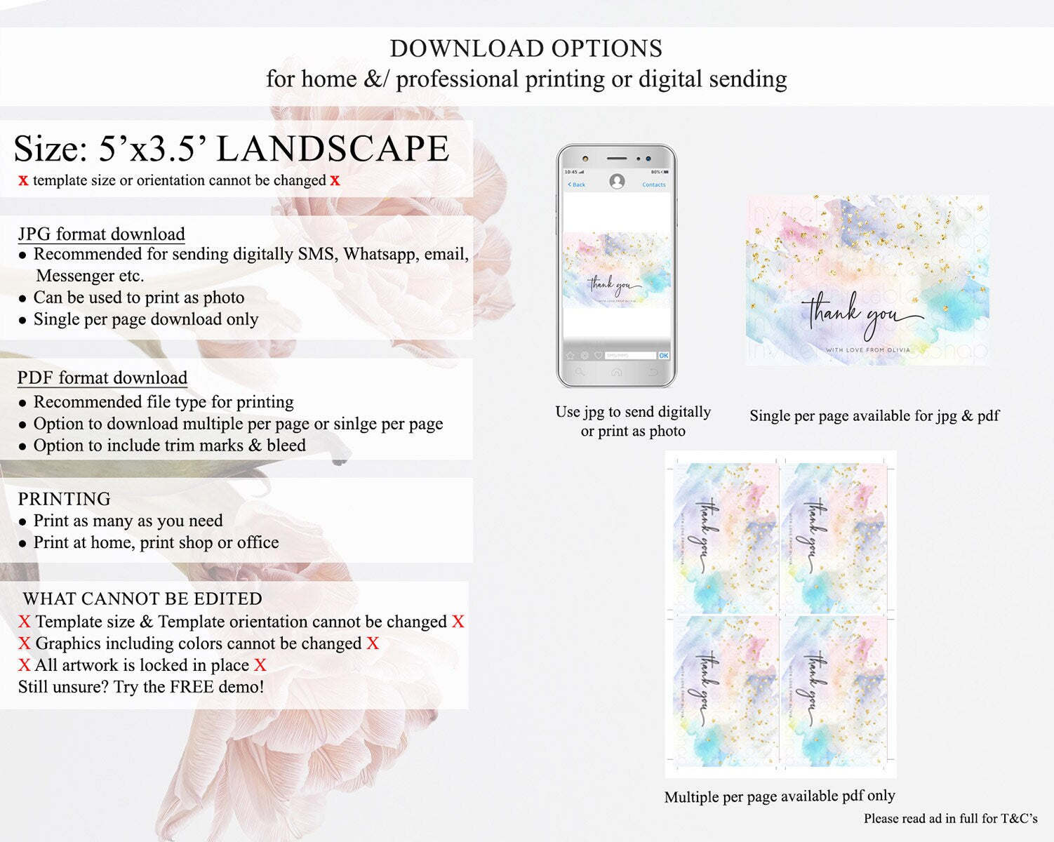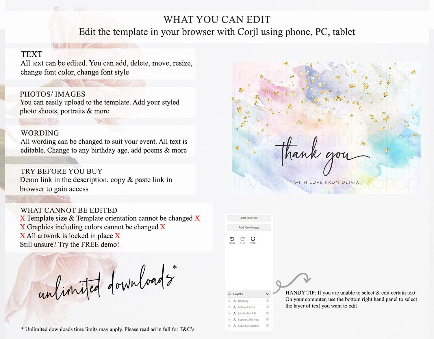 Pastel Thank You Rainbow Thank You Card Colorful Pastel Birthday Thank You Card Confetti Watercolor Pastel Teacher Thank You Cards D10424
