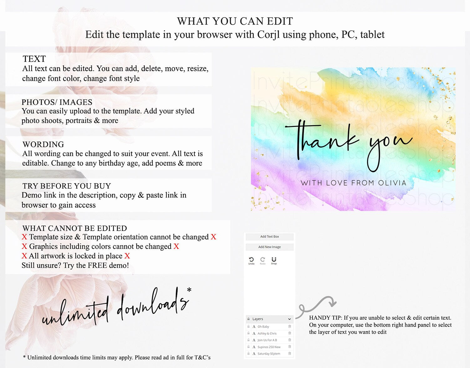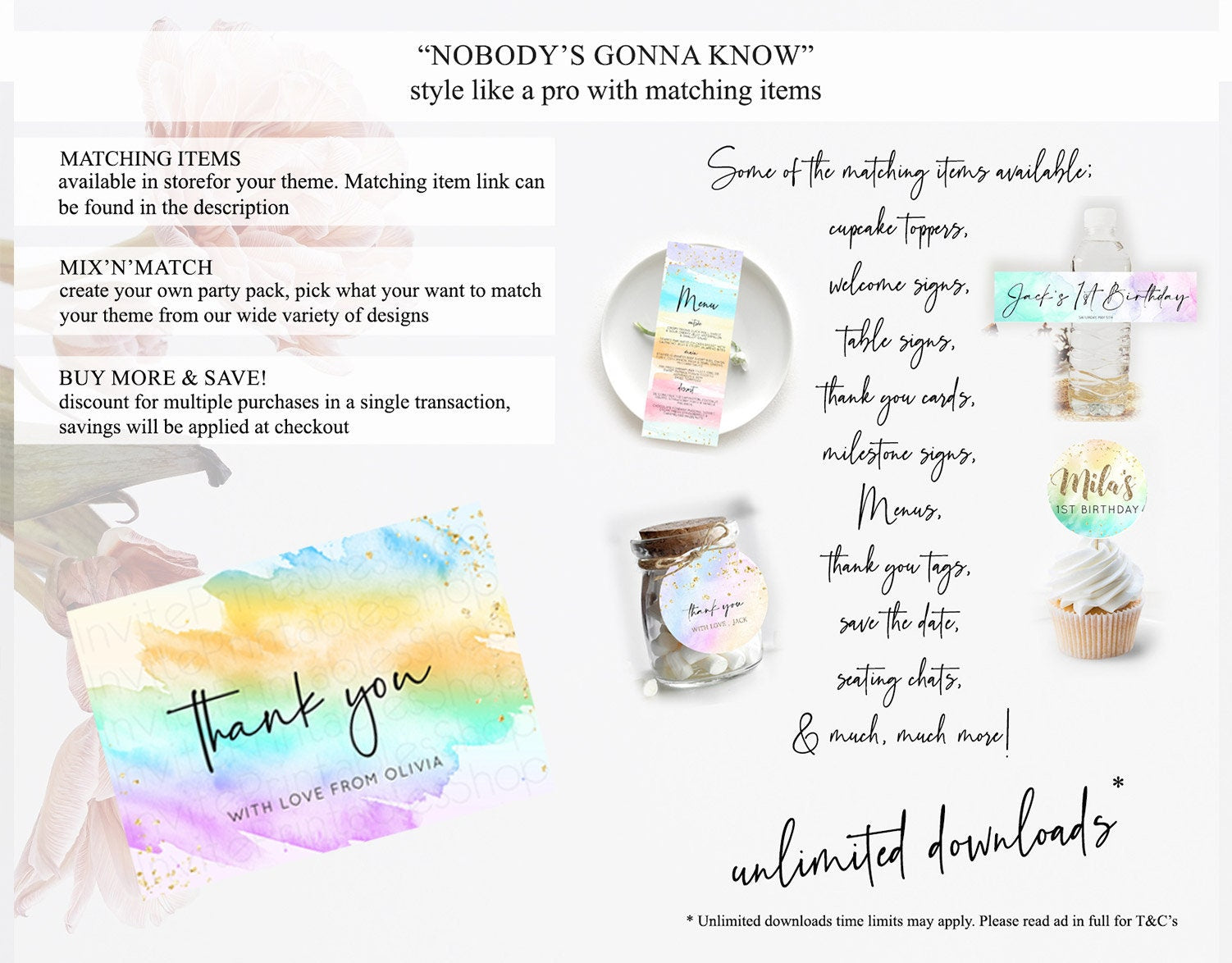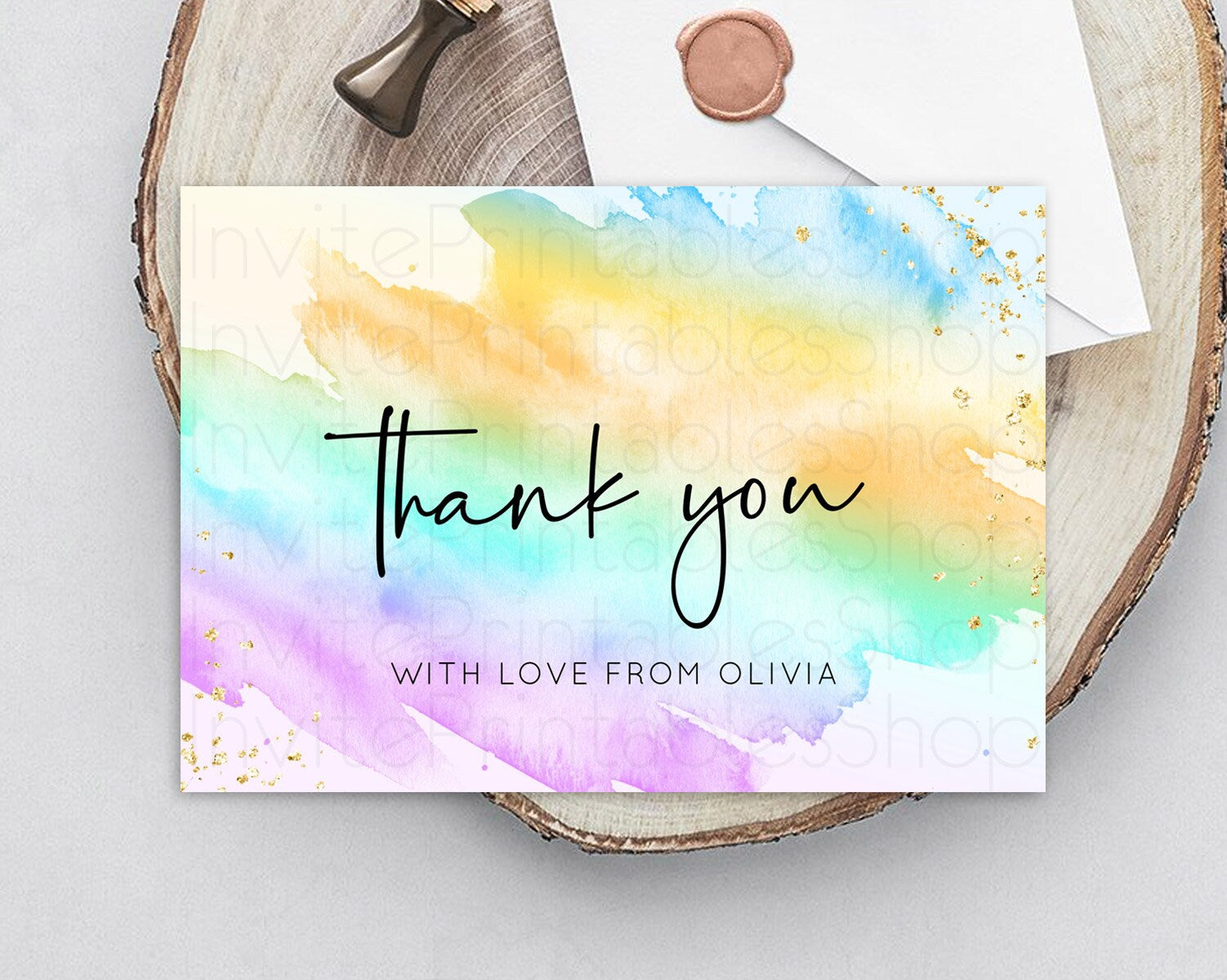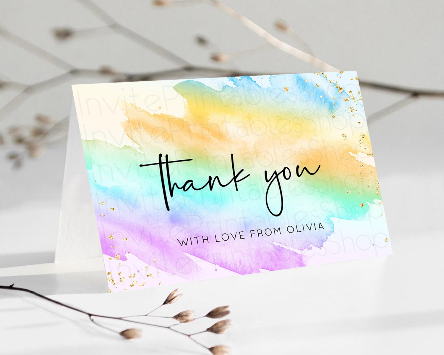 Pastel Thank You Rainbow Thank You Card Colorful Pastel Birthday Thank You Card Confetti Watercolor Pastel Teacher Thank You Cards D10427