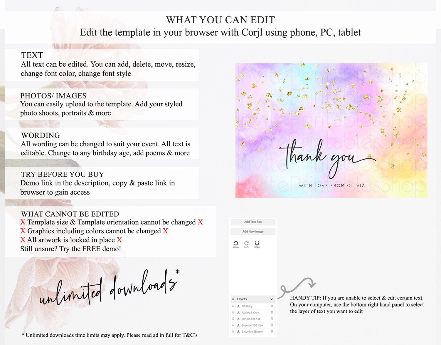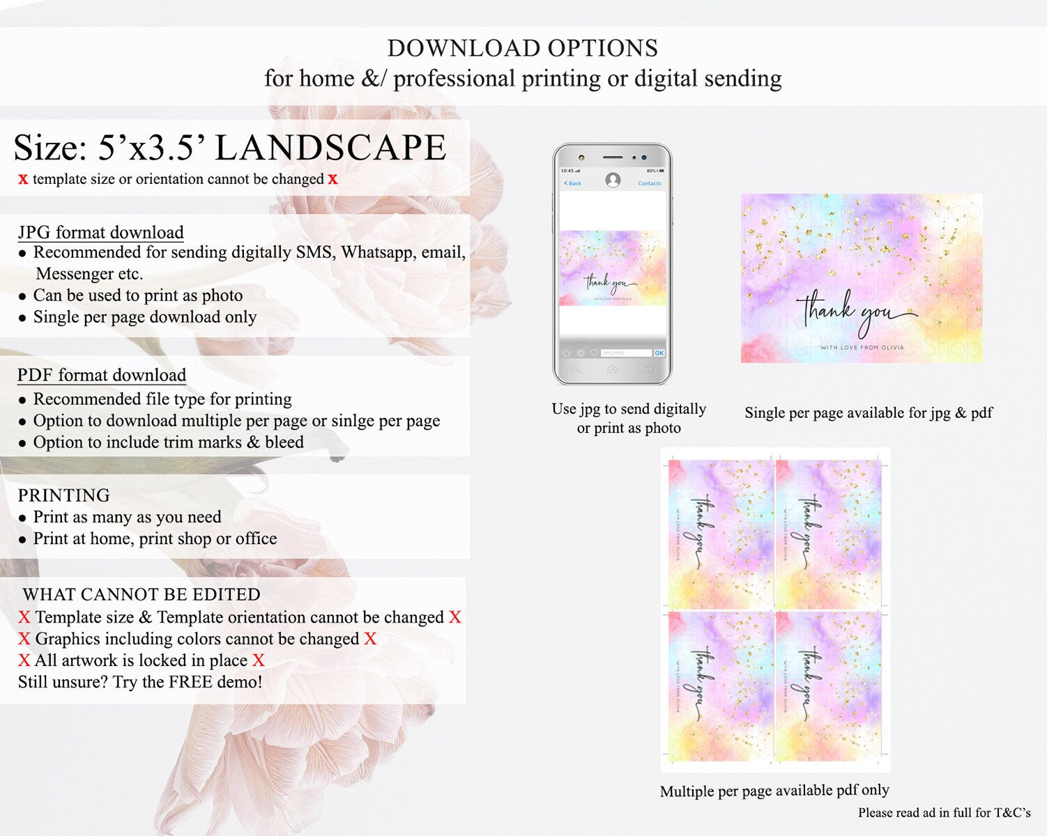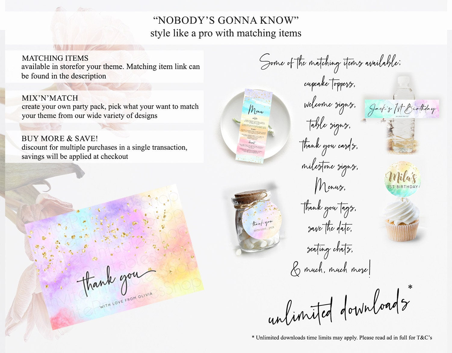 Pastel Thank You Rainbow Thank You Card Colorful Pastel Birthday Thank You Card Confetti Watercolor Pastel Teacher Thank You Cards D10437