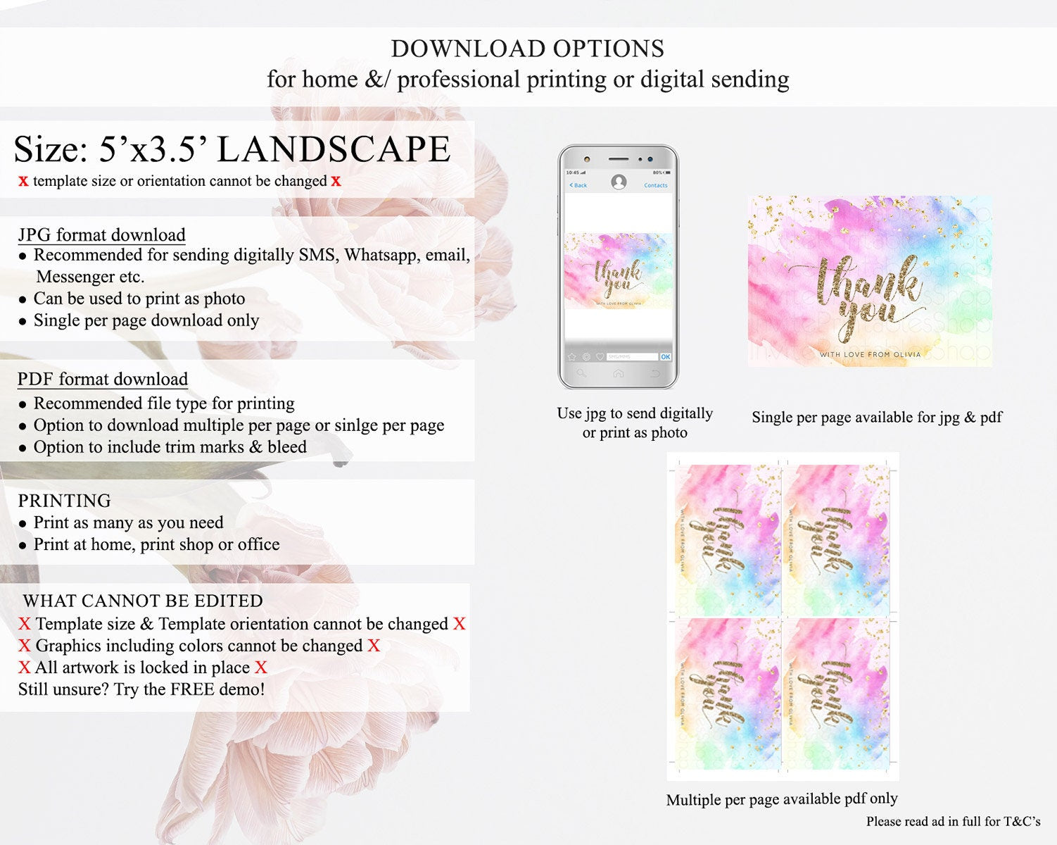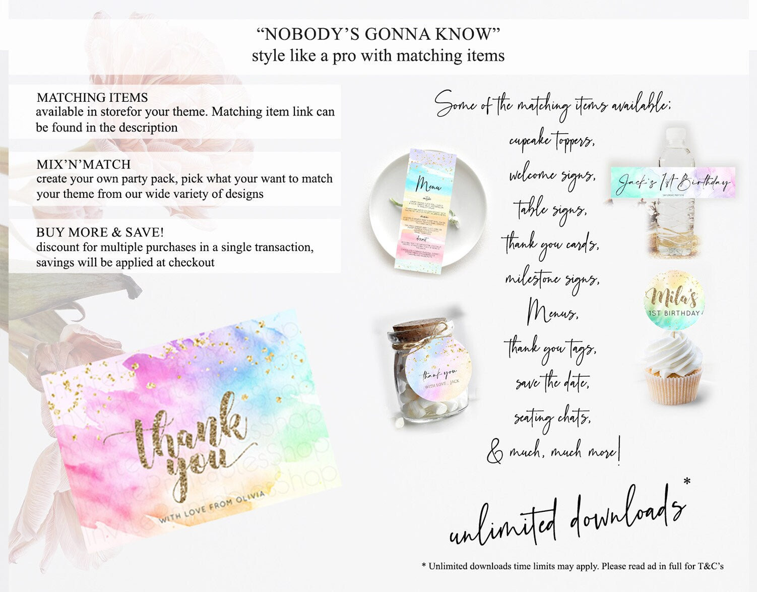 Pastel Thank You Rainbow Thank You Card Colorful Pastel Birthday Thank You Card Confetti Watercolor Pastel Teacher Thank You Cards D10450