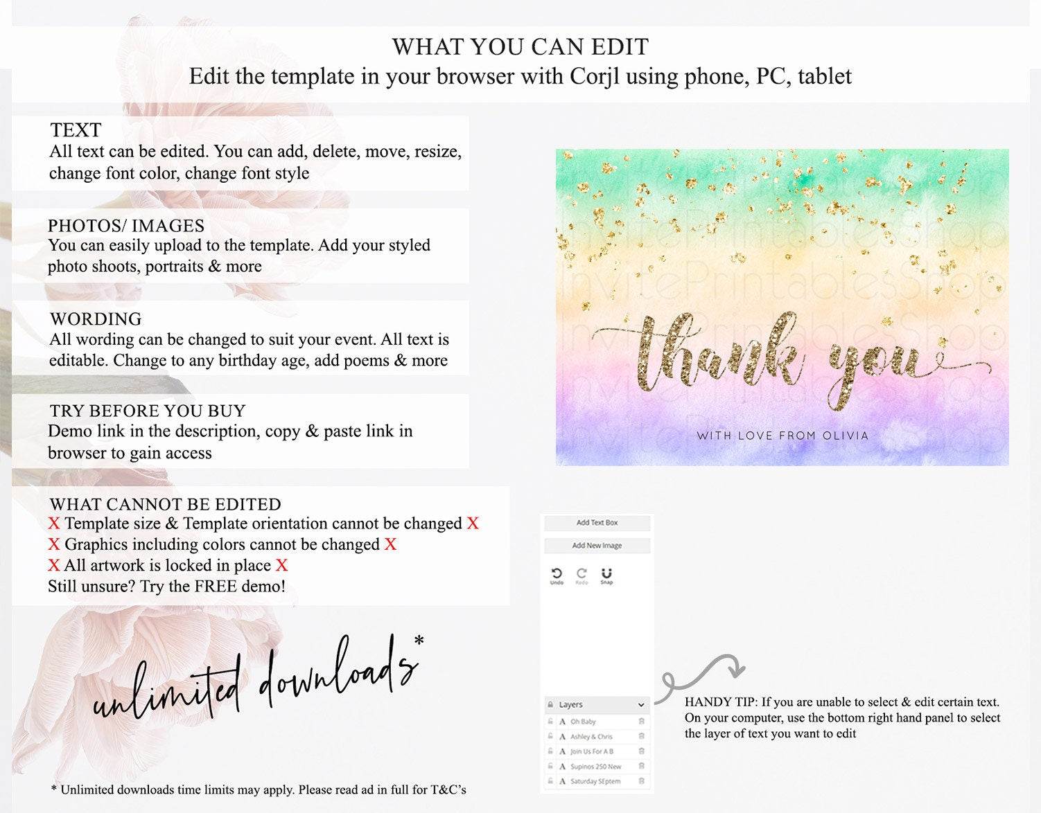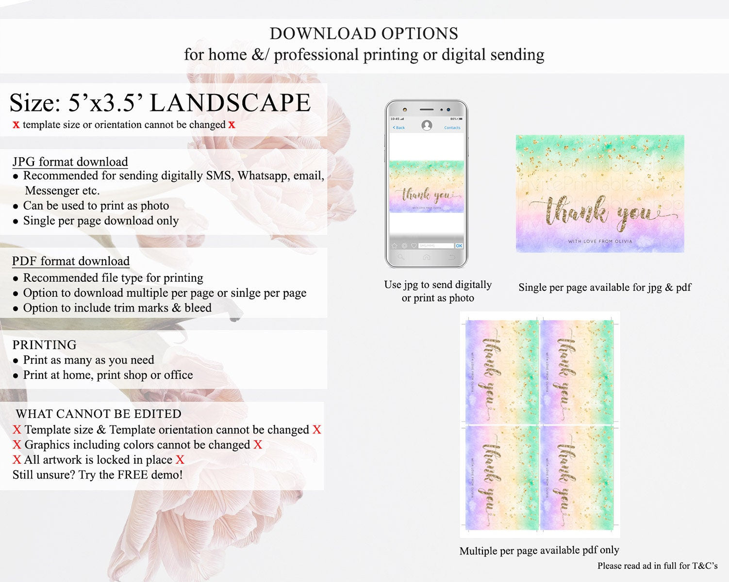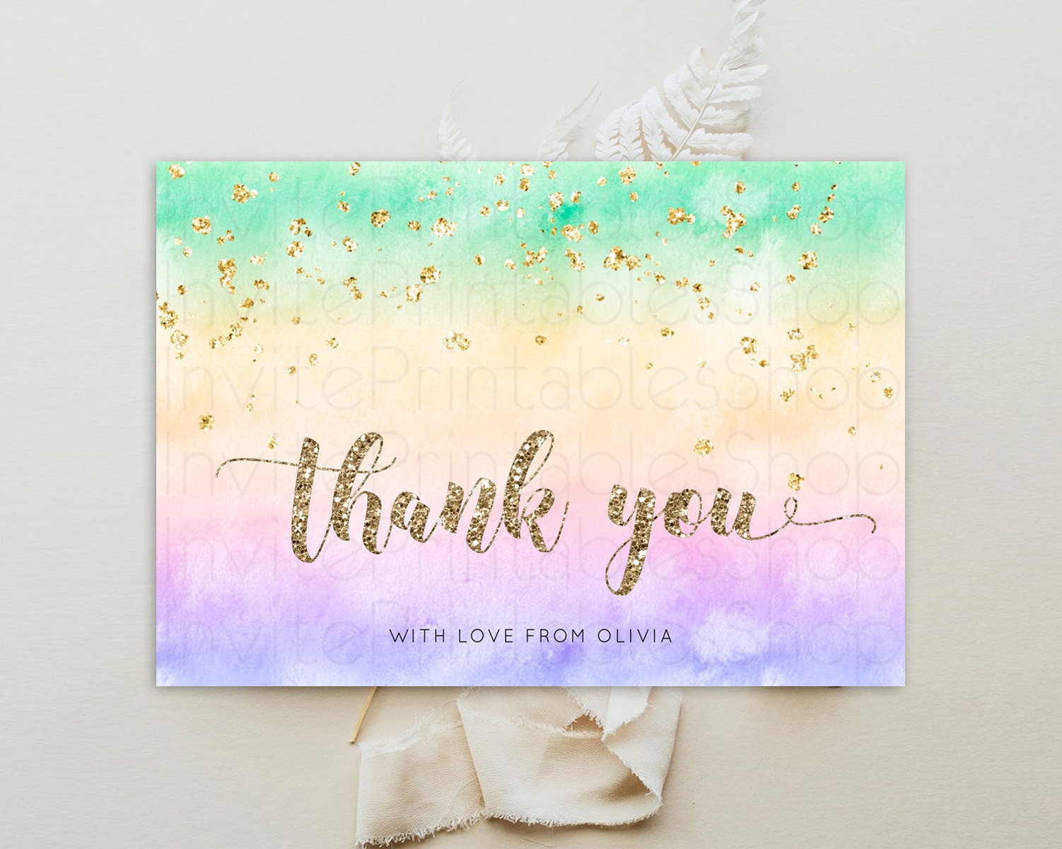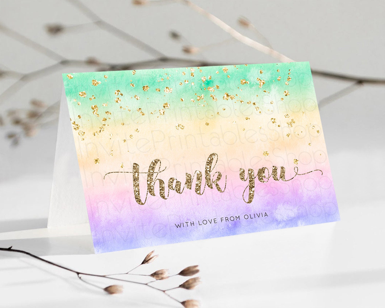 Pastel Thank You Rainbow Thank You Card Colorful Pastel Birthday Thank You Card Confetti Watercolor Pastel Teacher Thank You Cards D10478