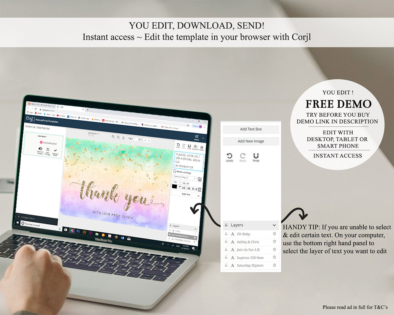 • After purchase, Corjl emails your editing link. Allow up to 15 minutes for delivery.