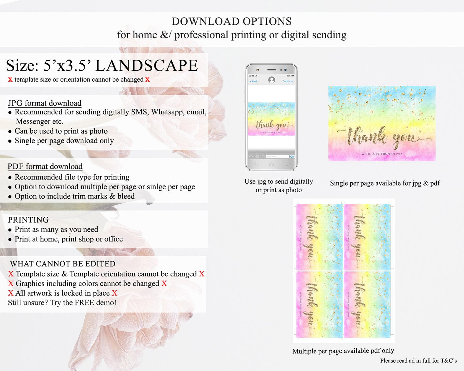 Pastel Thank You Rainbow Thank You Card Colorful Pastel Birthday Thank You Card Confetti Watercolor Pastel Teacher Thank You Cards D10479