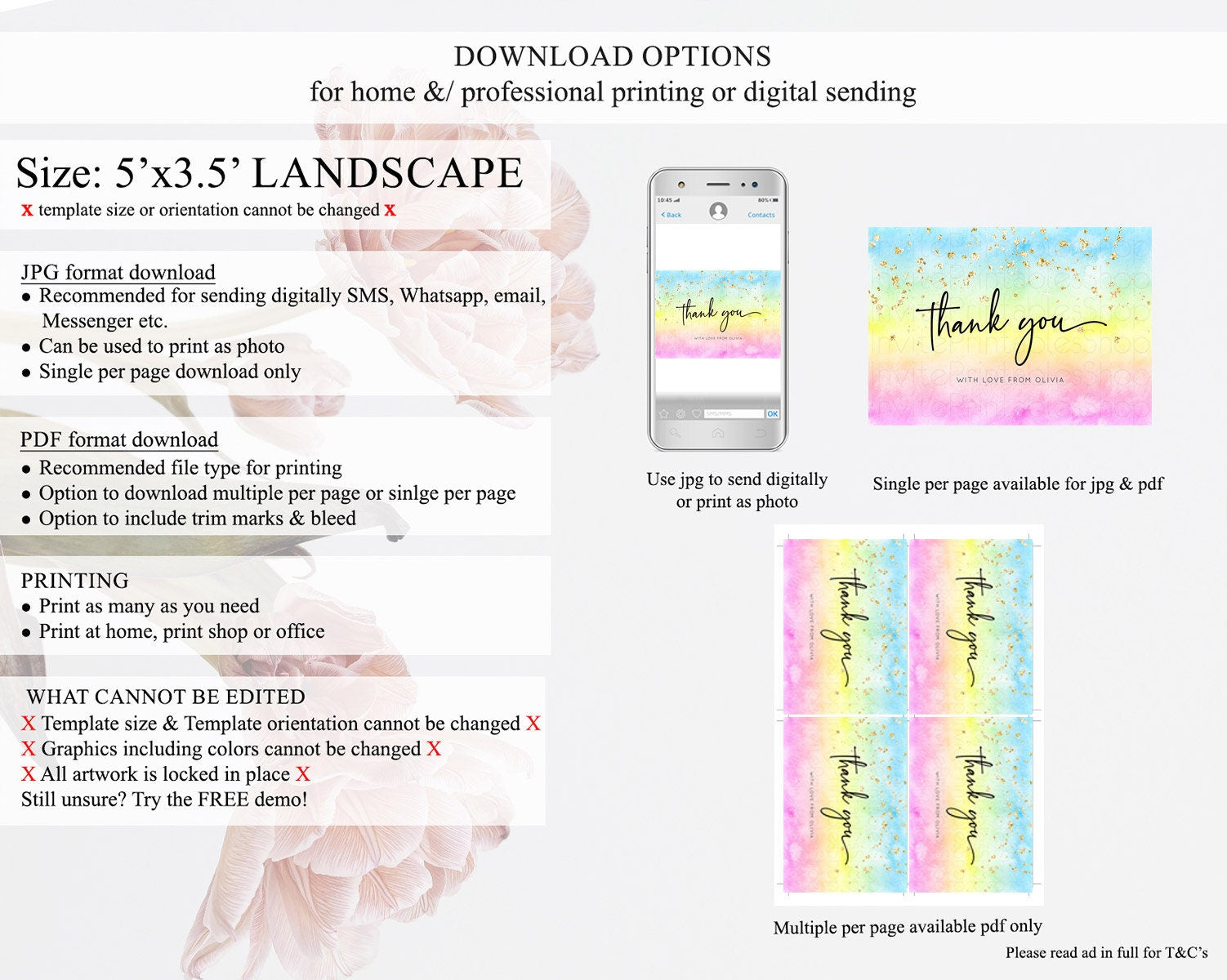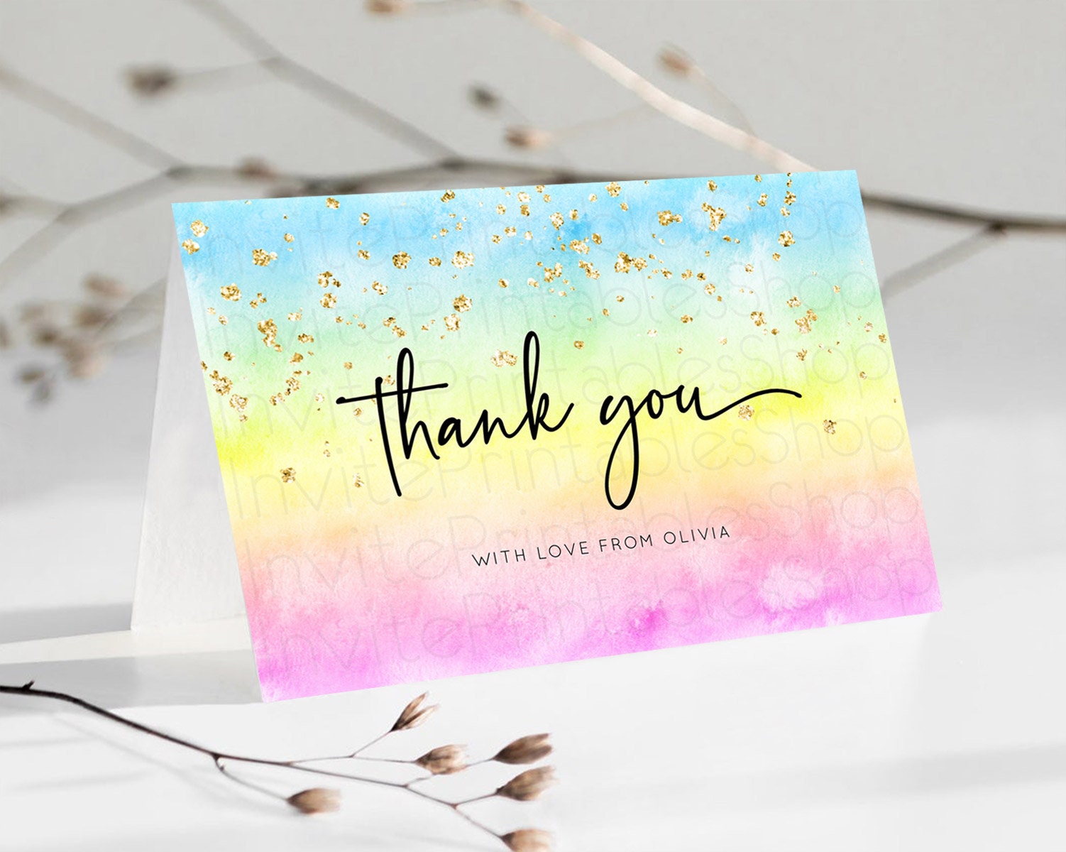Pastel Thank You Rainbow Thank You Card Colorful Pastel Birthday Thank You Card Confetti Watercolor Pastel Teacher Thank You Cards D10480