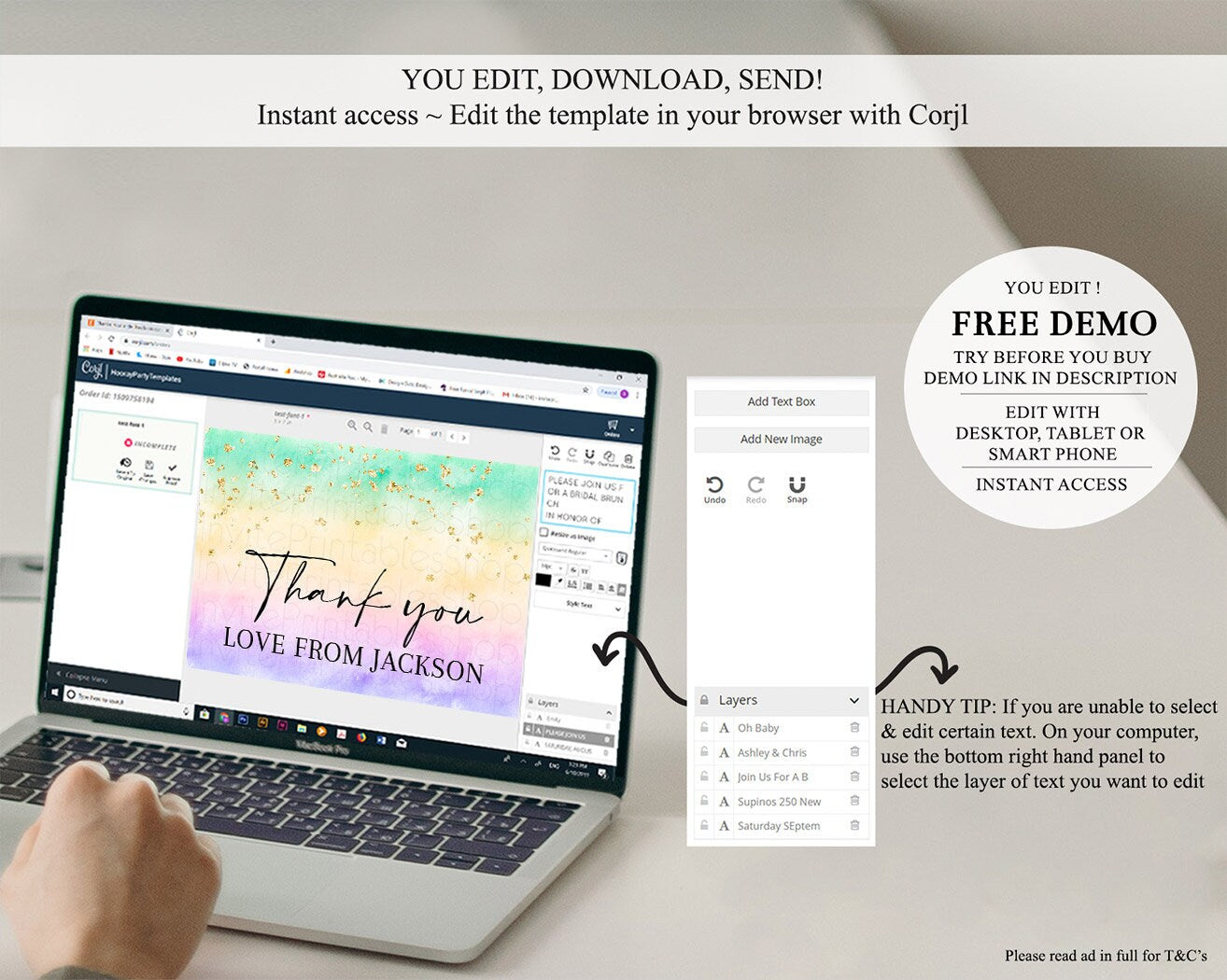 • After purchase, Corjl emails your editing link. Allow up to 15 minutes for delivery.
