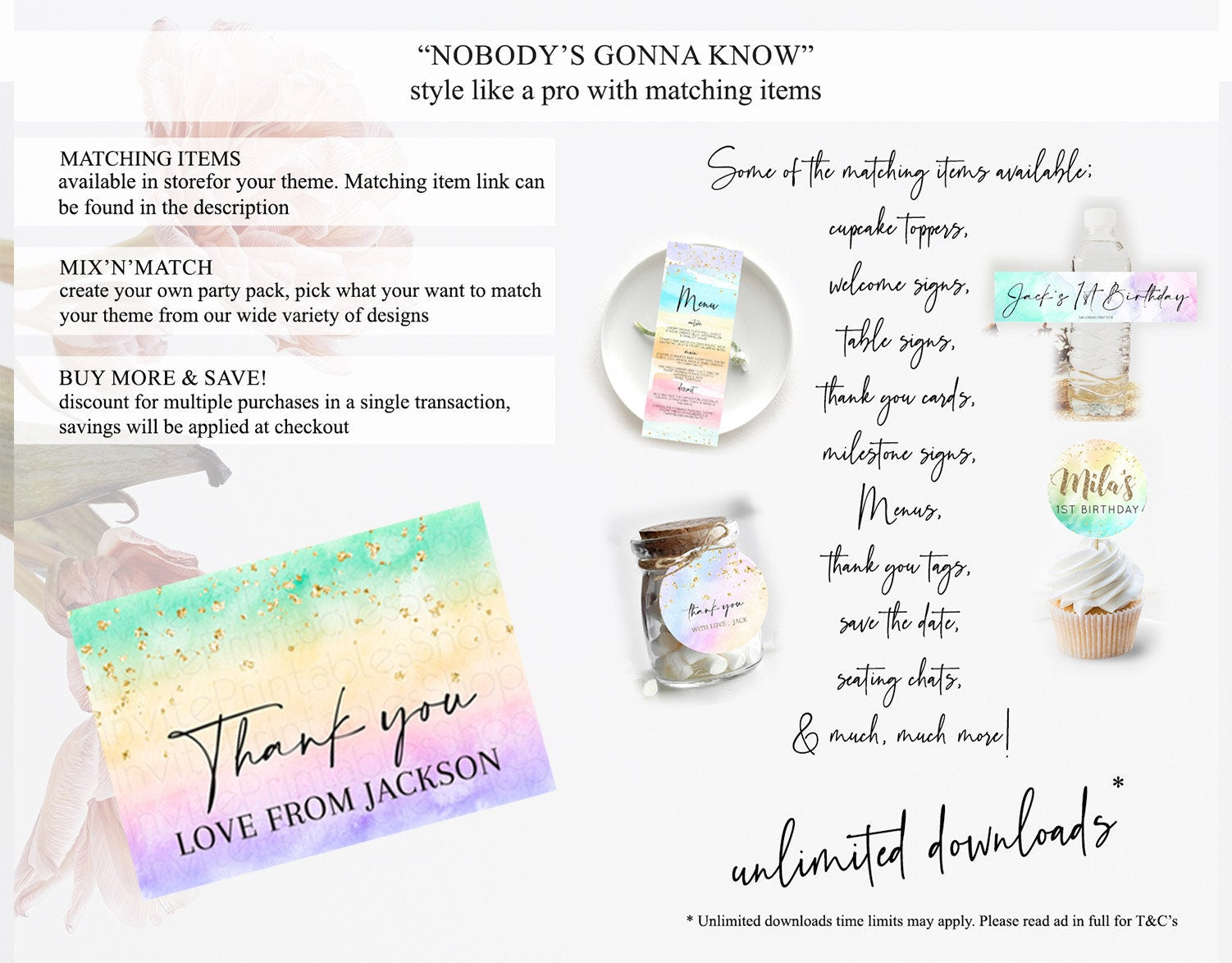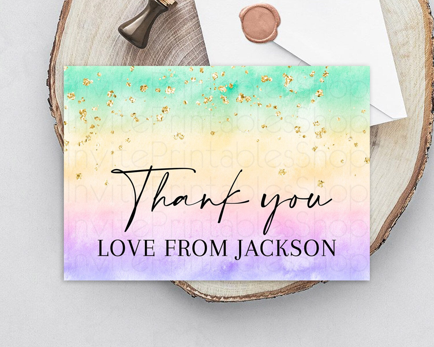 Pastel Thank You Rainbow Thank You Card Colorful Pastel Birthday Thank You Card Confetti Watercolor Pastel Teacher Thank You Cards D10481