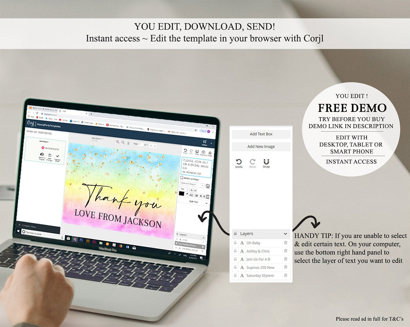 • After purchase, Corjl emails your editing link. Allow up to 15 minutes for delivery.