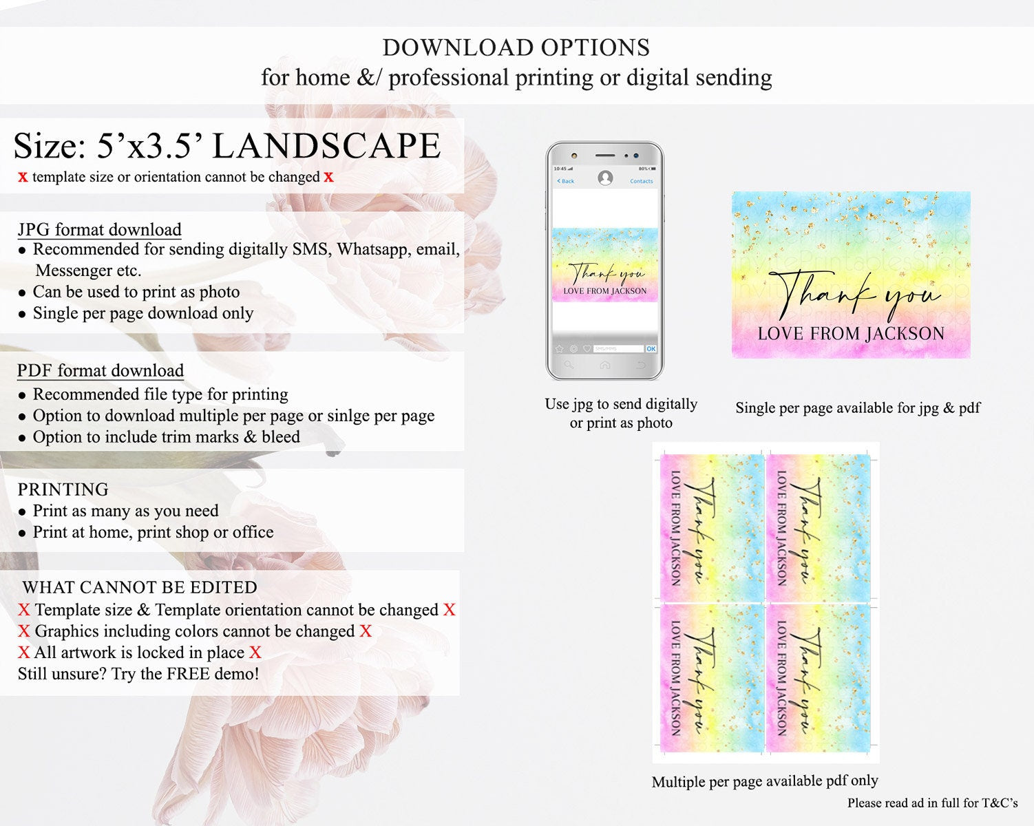Pastel Thank You Rainbow Thank You Card Colorful Pastel Birthday Thank You Card Confetti Watercolor Pastel Teacher Thank You Cards D10483
