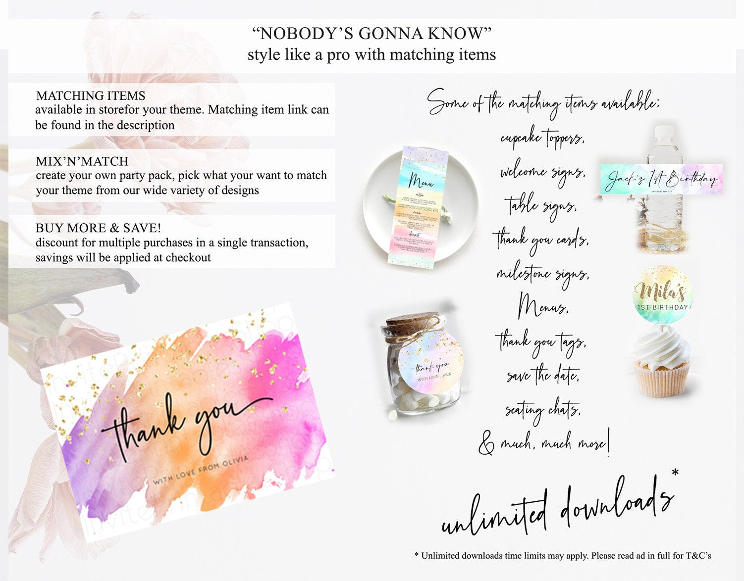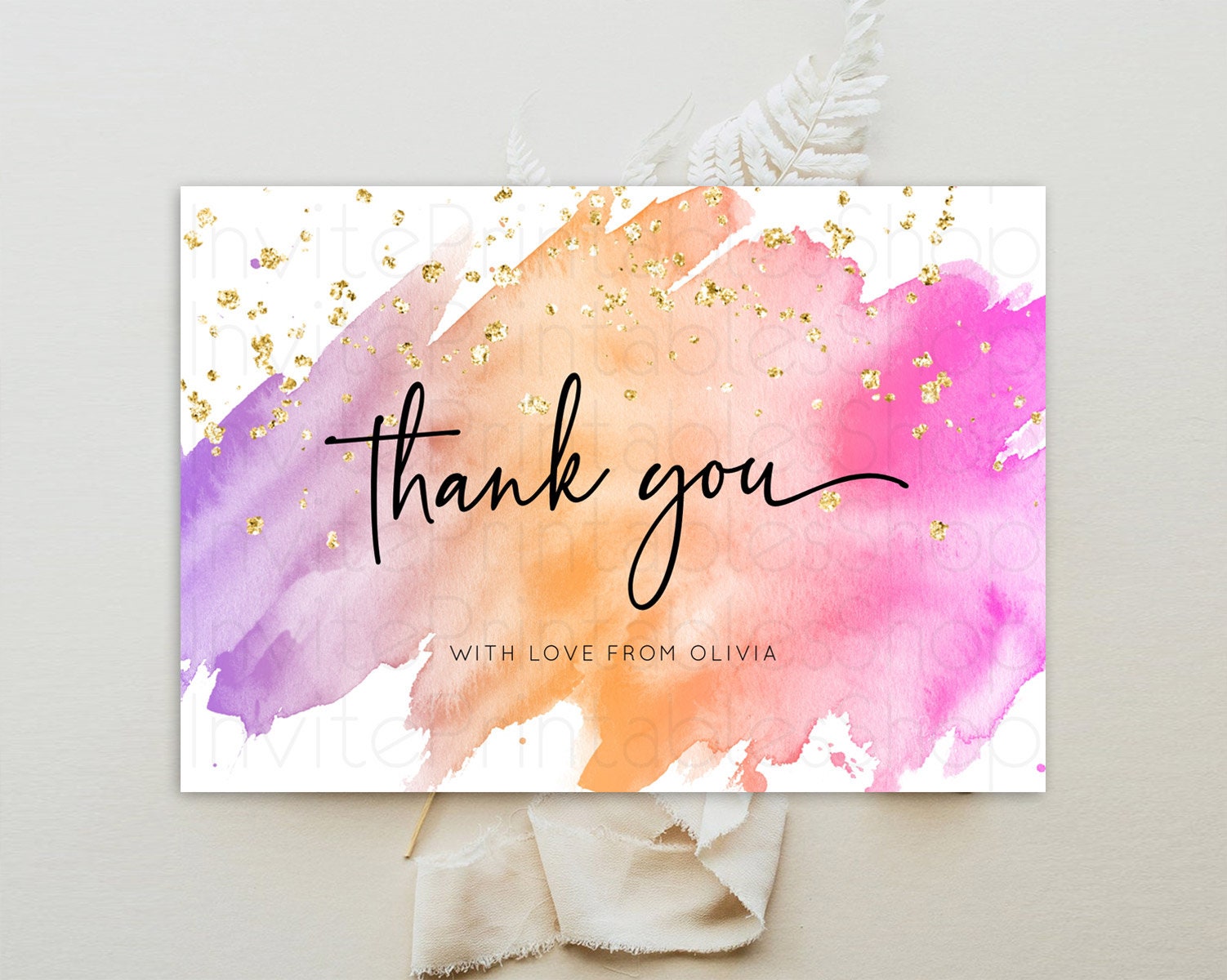 Pastel Thank You Rainbow Thank You Card Colorful Pastel Birthday Thank You Card Confetti Watercolor Pastel Teacher Thank You Cards D10488