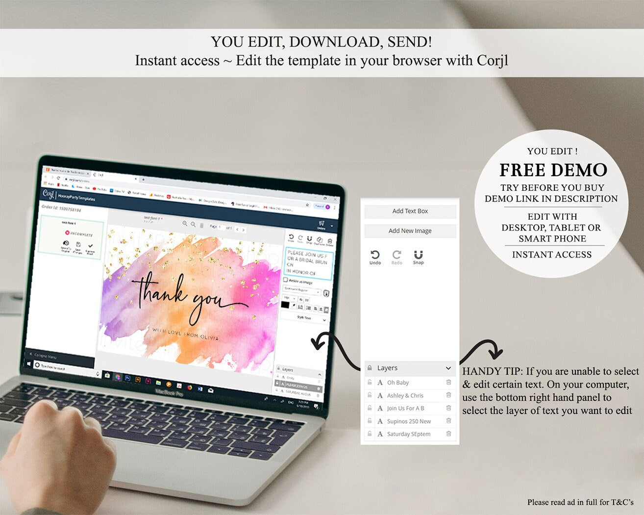 • After purchase, Corjl emails your editing link. Allow up to 15 minutes for delivery.