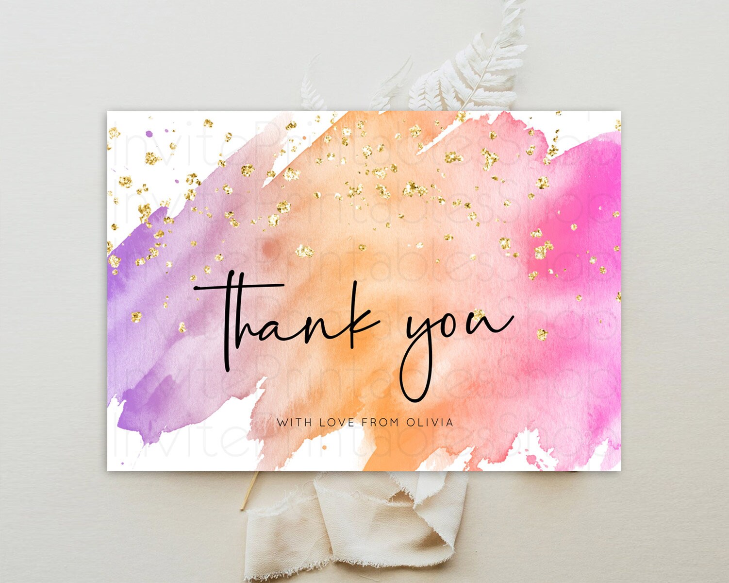 Pastel Thank You Rainbow Thank You Card Colorful Pastel Birthday Thank You Card Confetti Watercolor Pastel Teacher Thank You Cards D10488