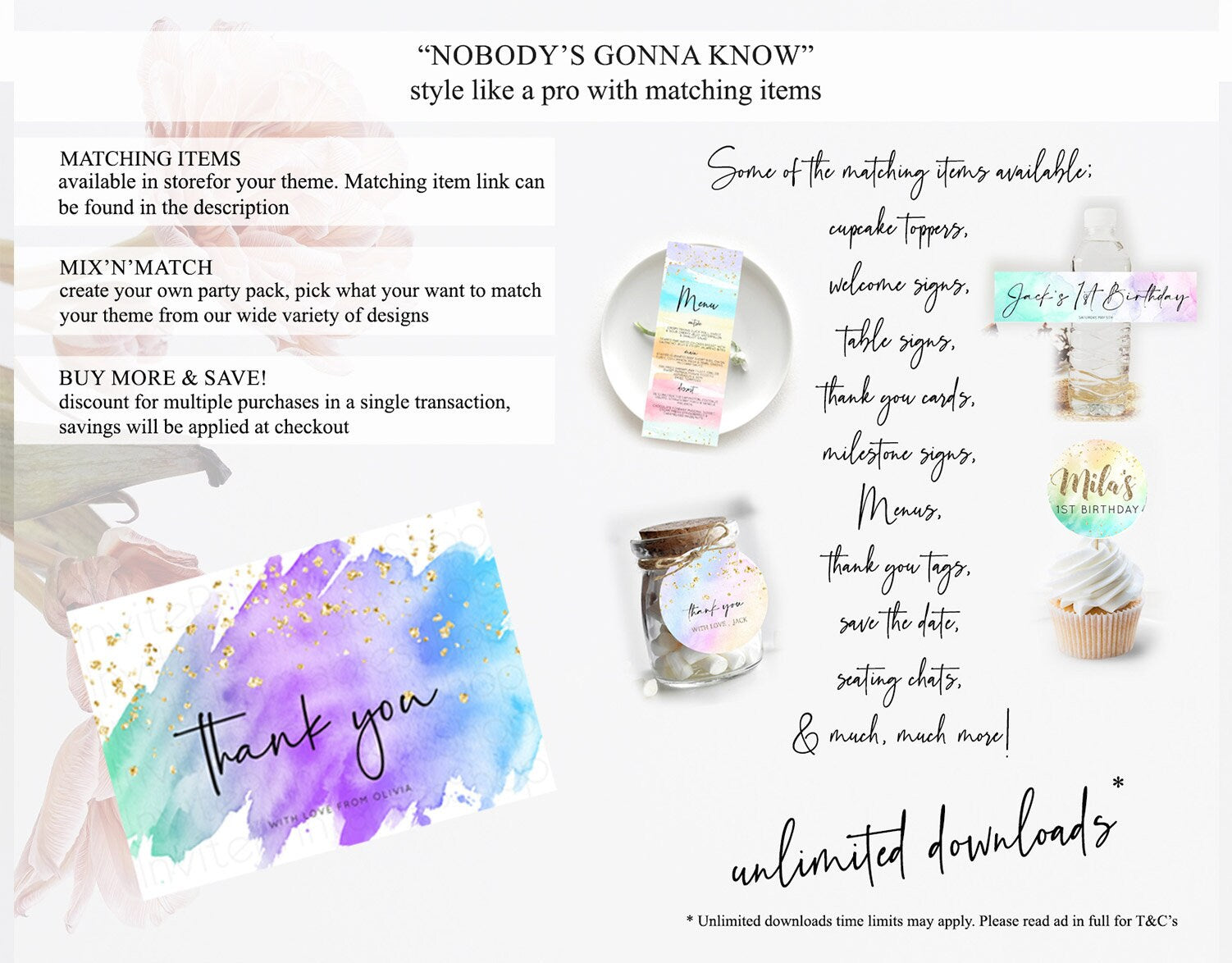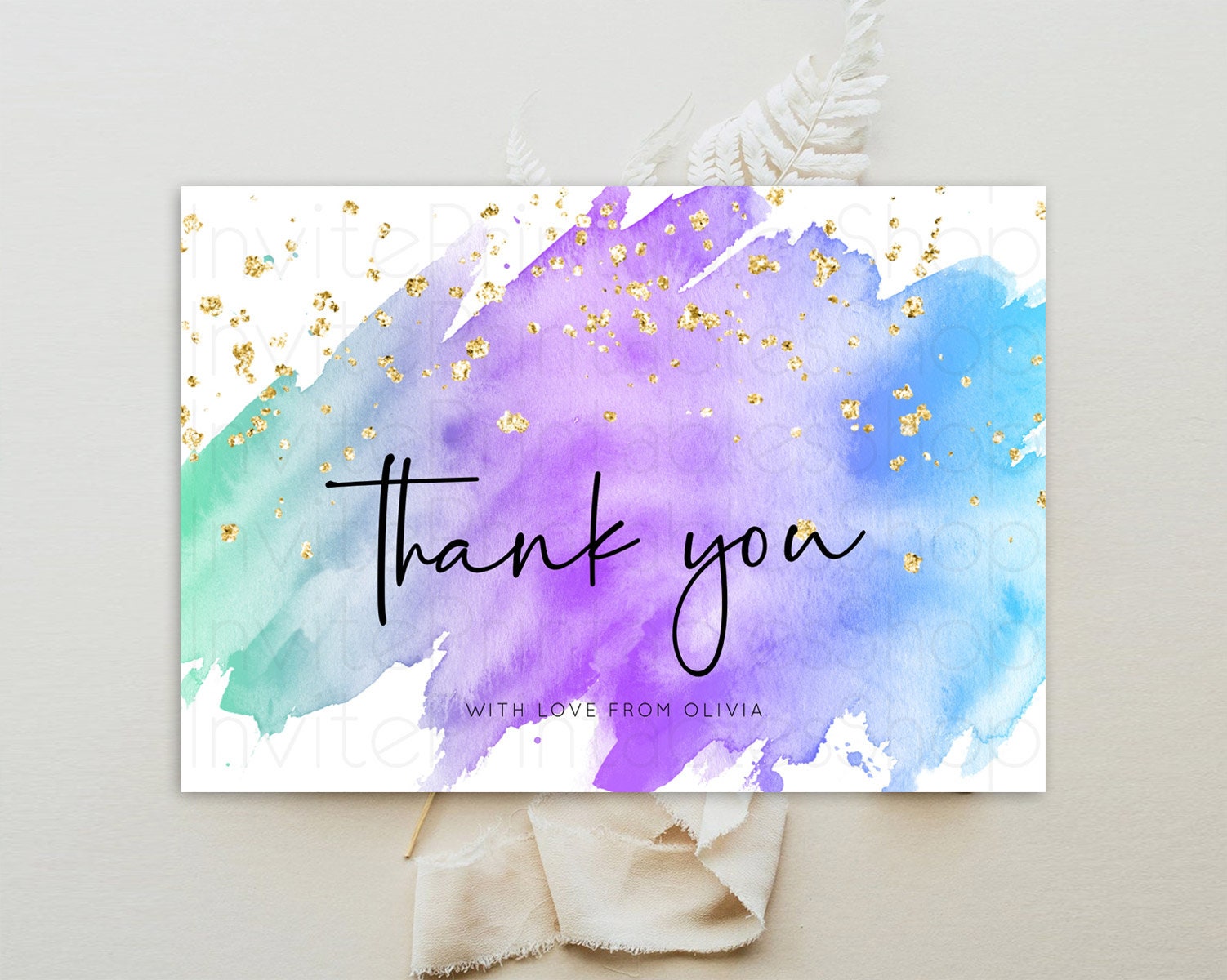 Pastel Thank You Rainbow Thank You Card Colorful Pastel Birthday Thank You Card Confetti Watercolor Pastel Teacher Thank You Cards D10491