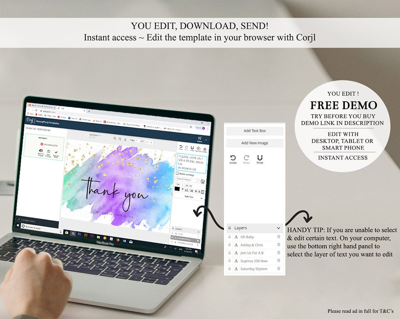 • After purchase, Corjl emails your editing link. Allow up to 15 minutes for delivery.