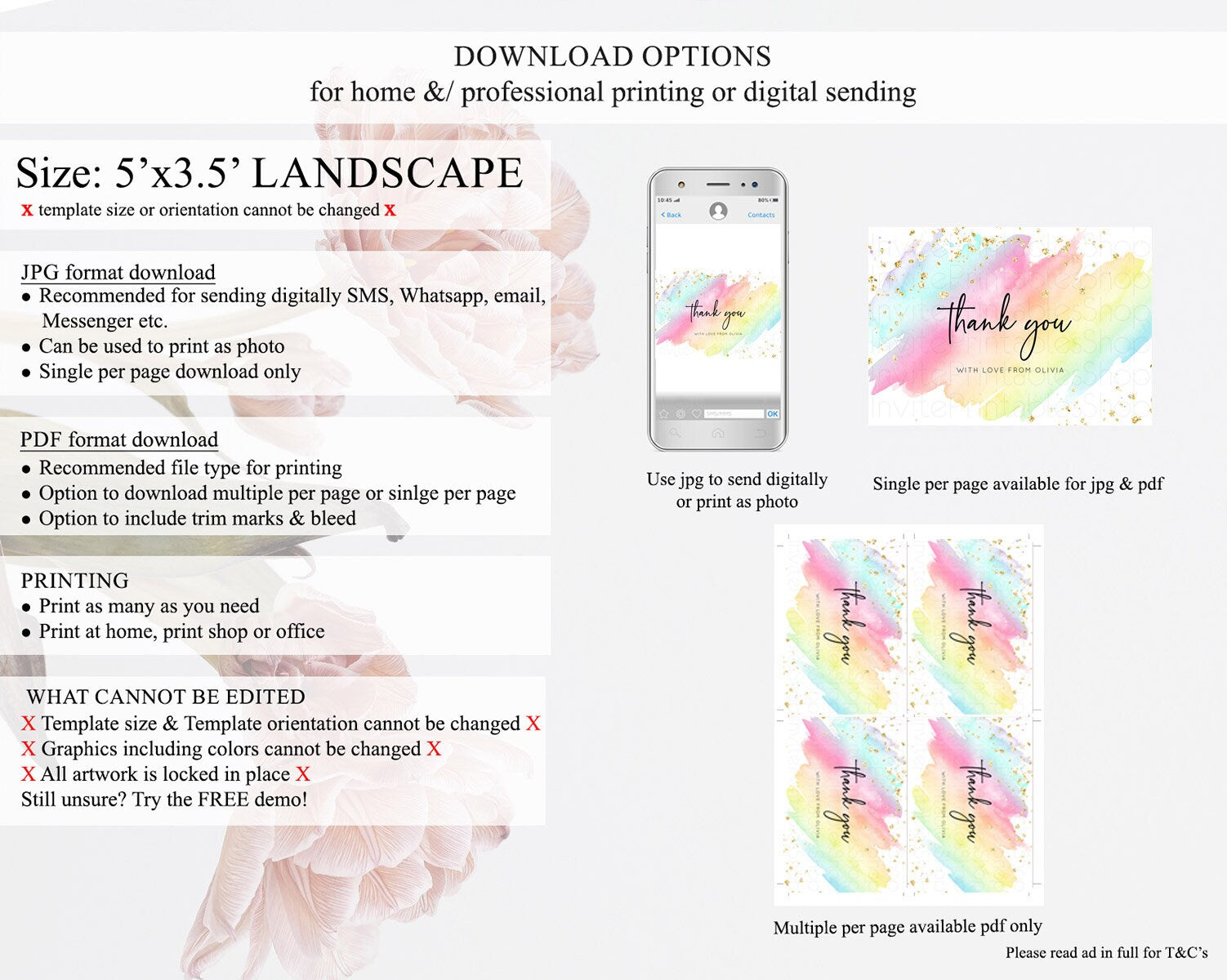 Pastel Thank You Rainbow Thank You Card Colorful Pastel Birthday Thank You Card Confetti Watercolor Pastel Teacher Thank You Cards D10495