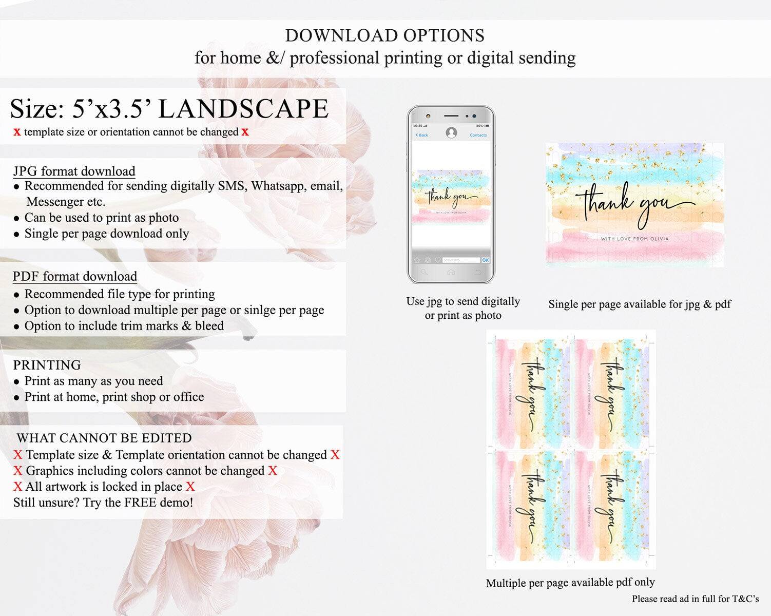 • Template size & orientation cannot be changed. Please use the demo link to confirm this product suits your needs.