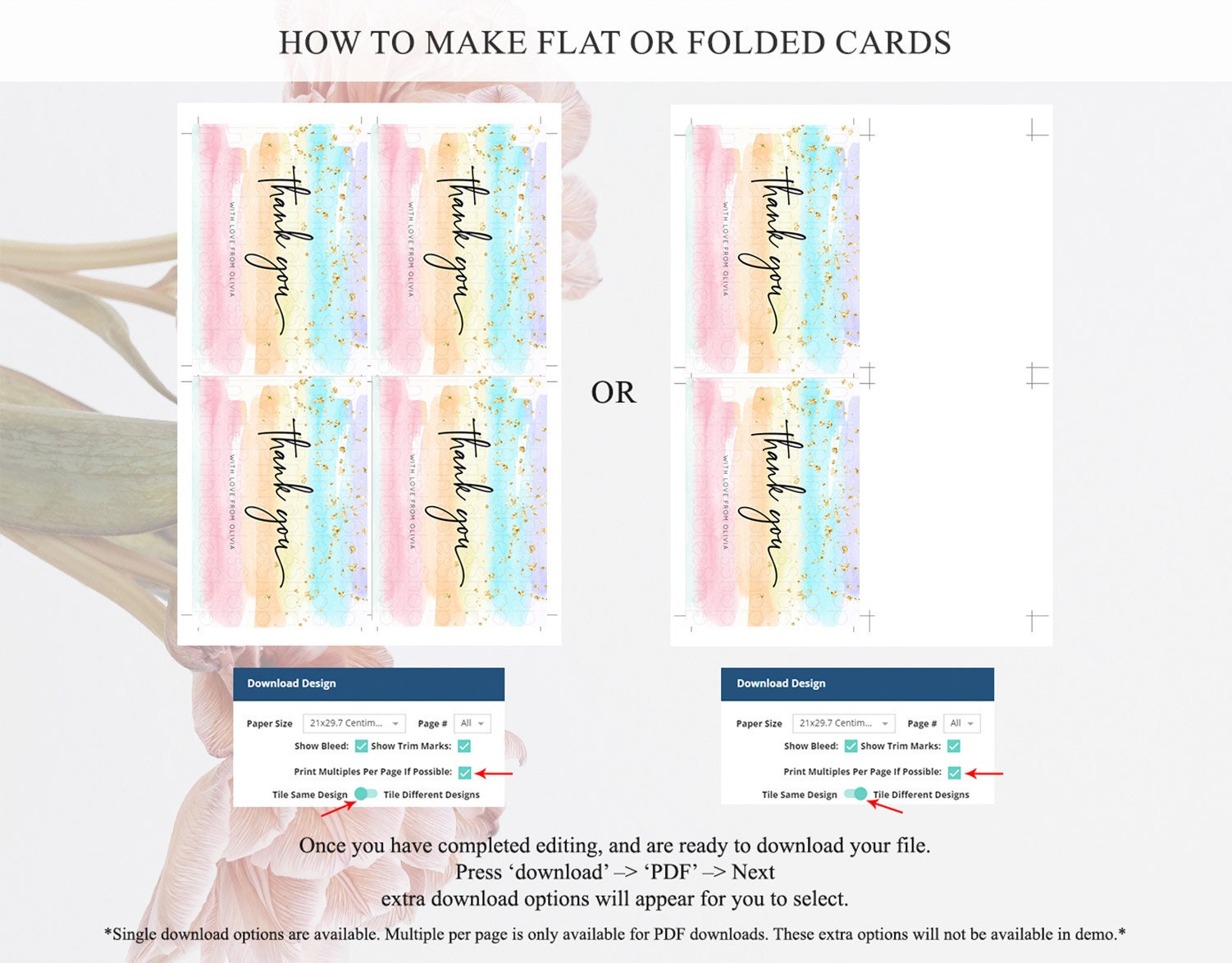• Custom changes to artwork are not provided on existing templates.