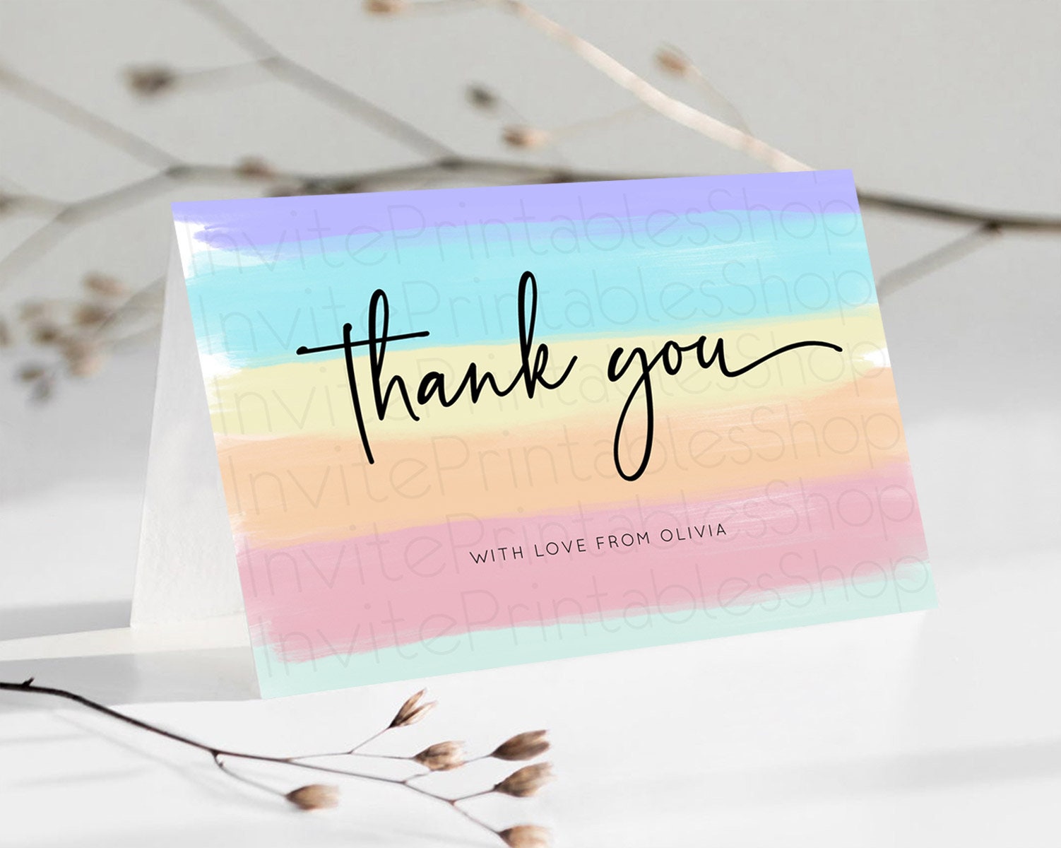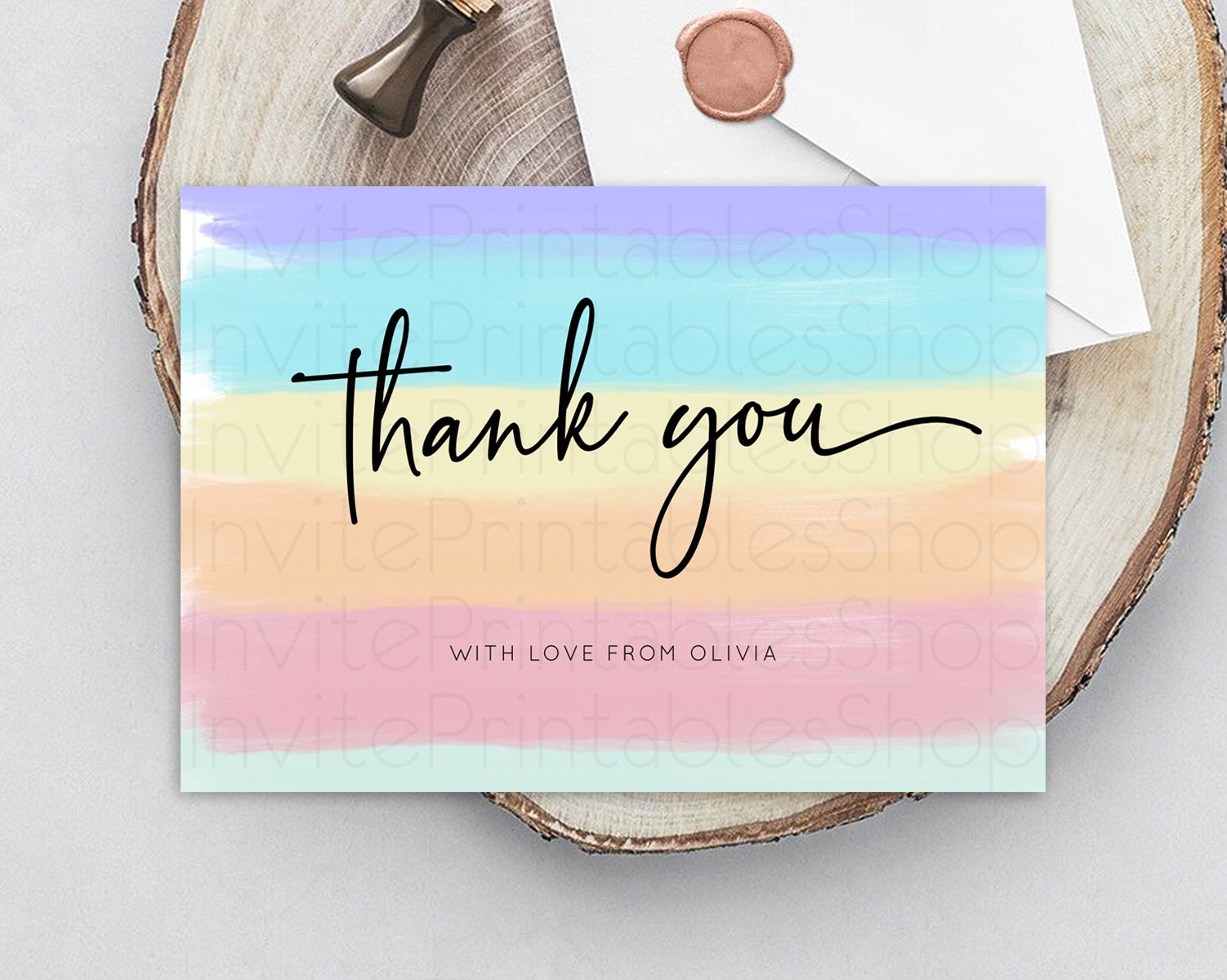 Pastel Thank You Rainbow Thank You Card Colorful Pastel Birthday Thank You Card Confetti Watercolor Pastel Teacher Thank You Cards D10510