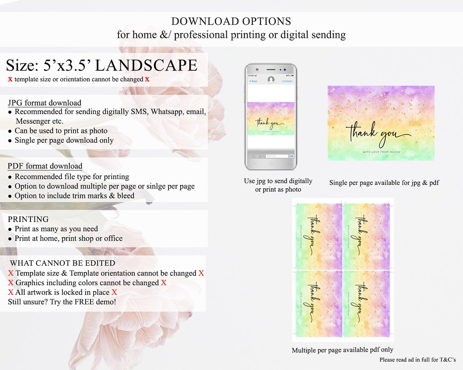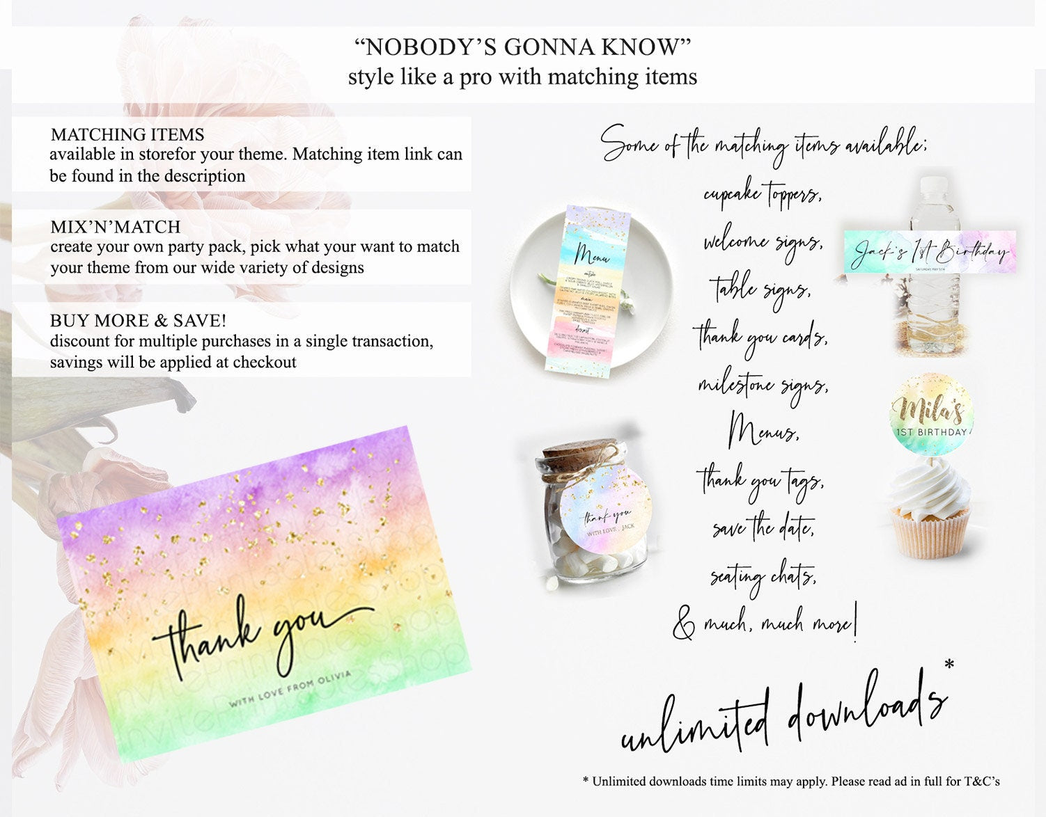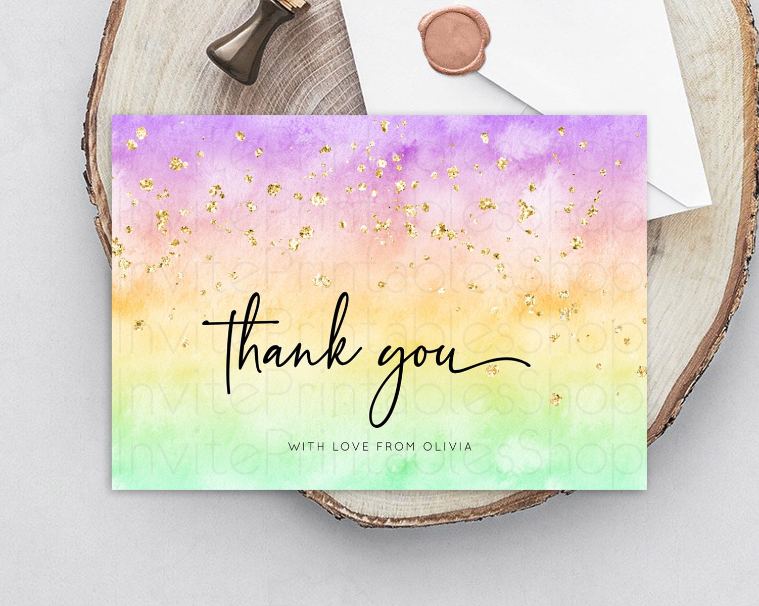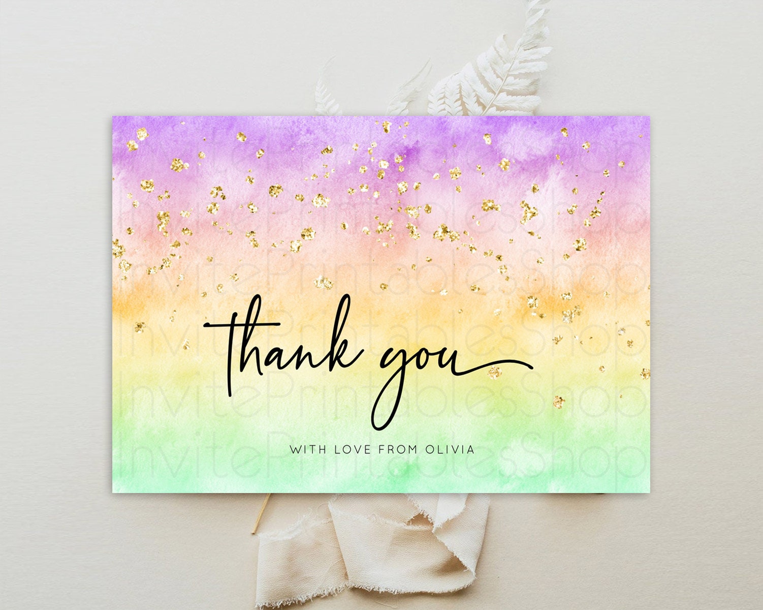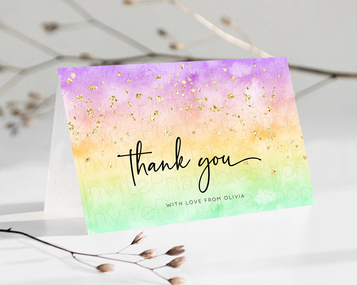 Pastel Thank You Rainbow Thank You Card Colorful Pastel Birthday Thank You Card Confetti Watercolor Pastel Teacher Thank You Cards D10514