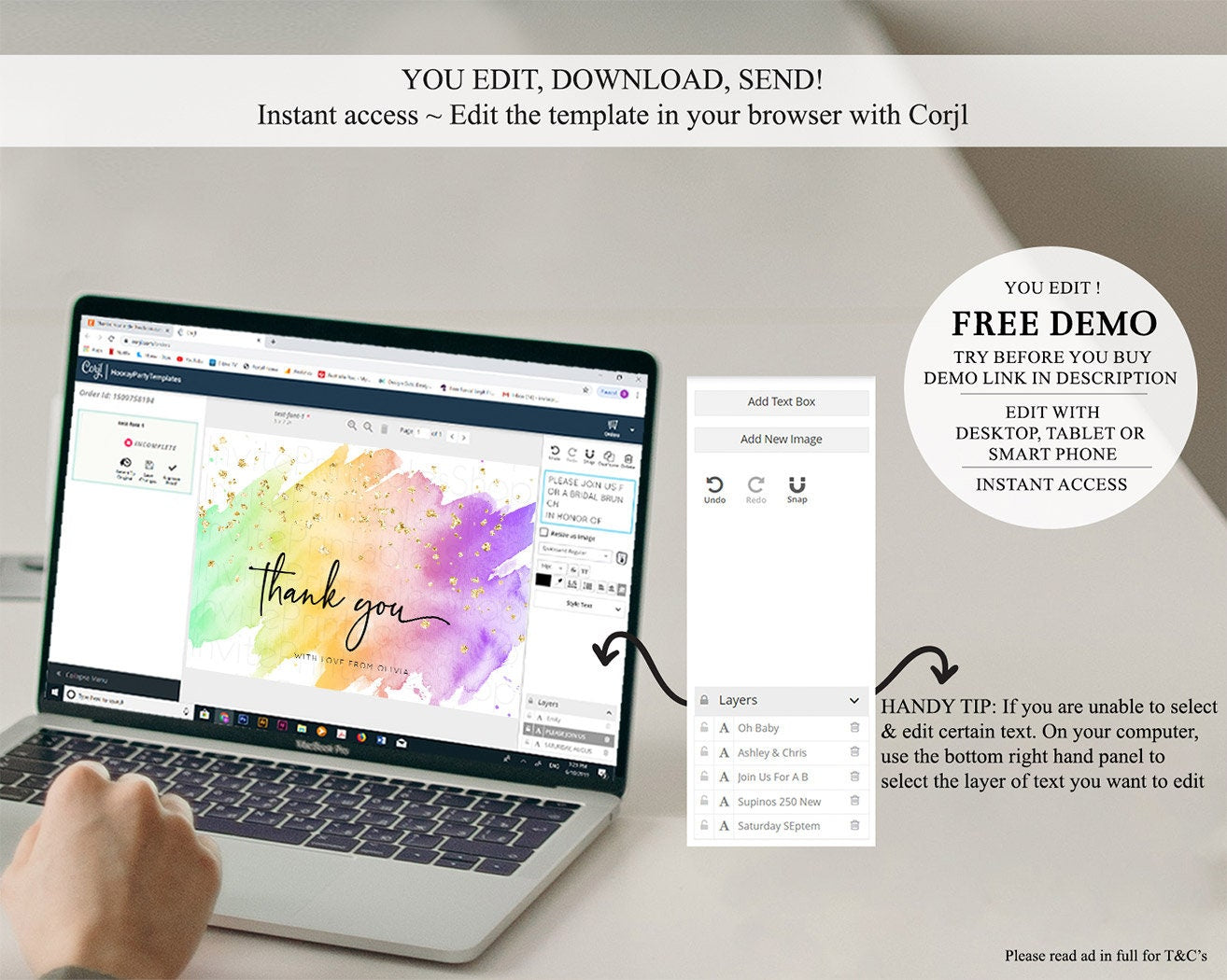 • After purchase, Corjl emails your editing link. Allow up to 15 minutes for delivery.