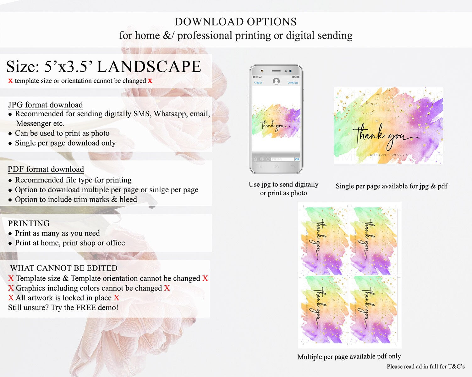 • Template size & orientation cannot be changed. Please use the demo link to confirm this product suits your needs.