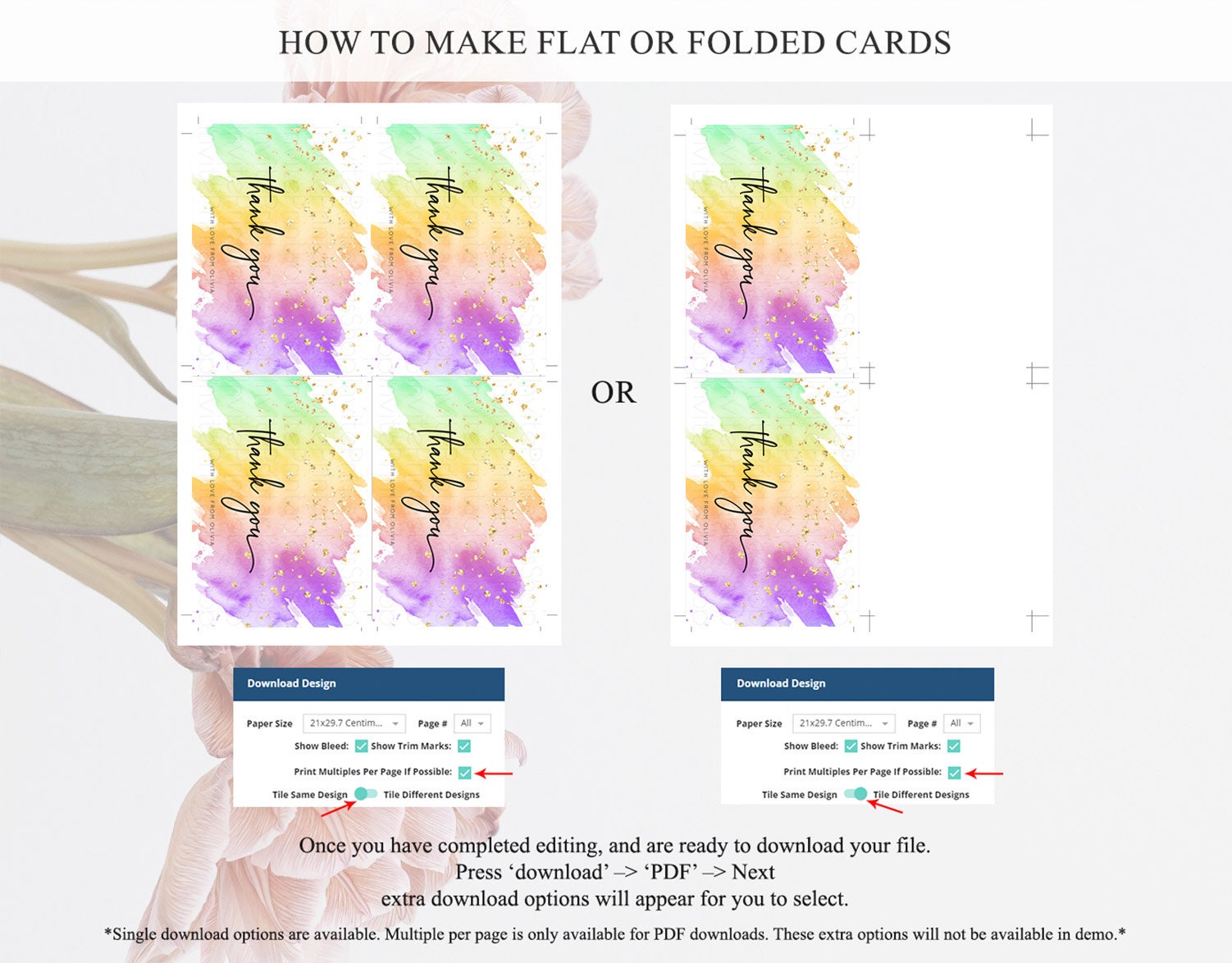 • Custom changes to artwork are not provided on existing templates.