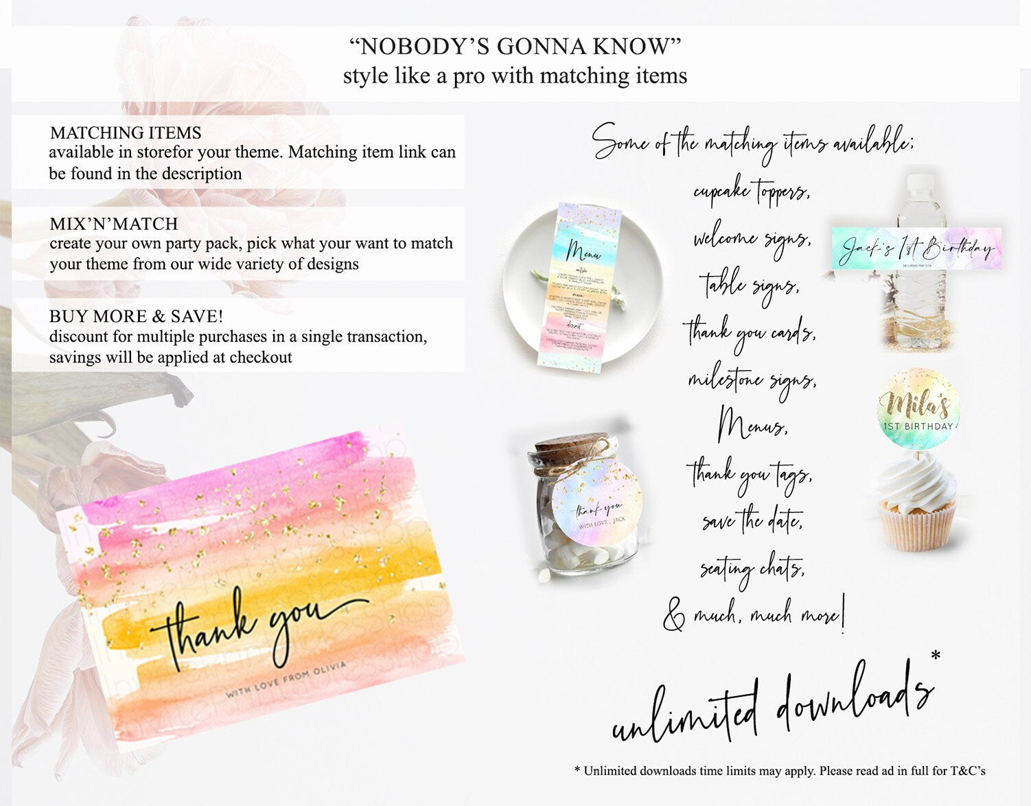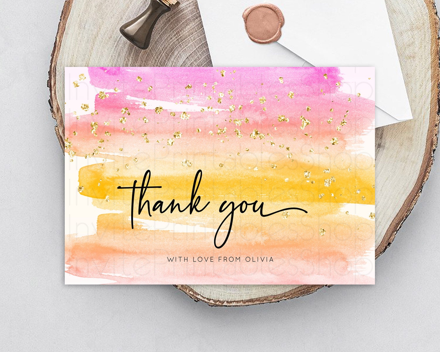 Pastel Thank You Rainbow Thank You Card Colorful Pastel Birthday Thank You Card Confetti Watercolor Pastel Teacher Thank You Cards D10520