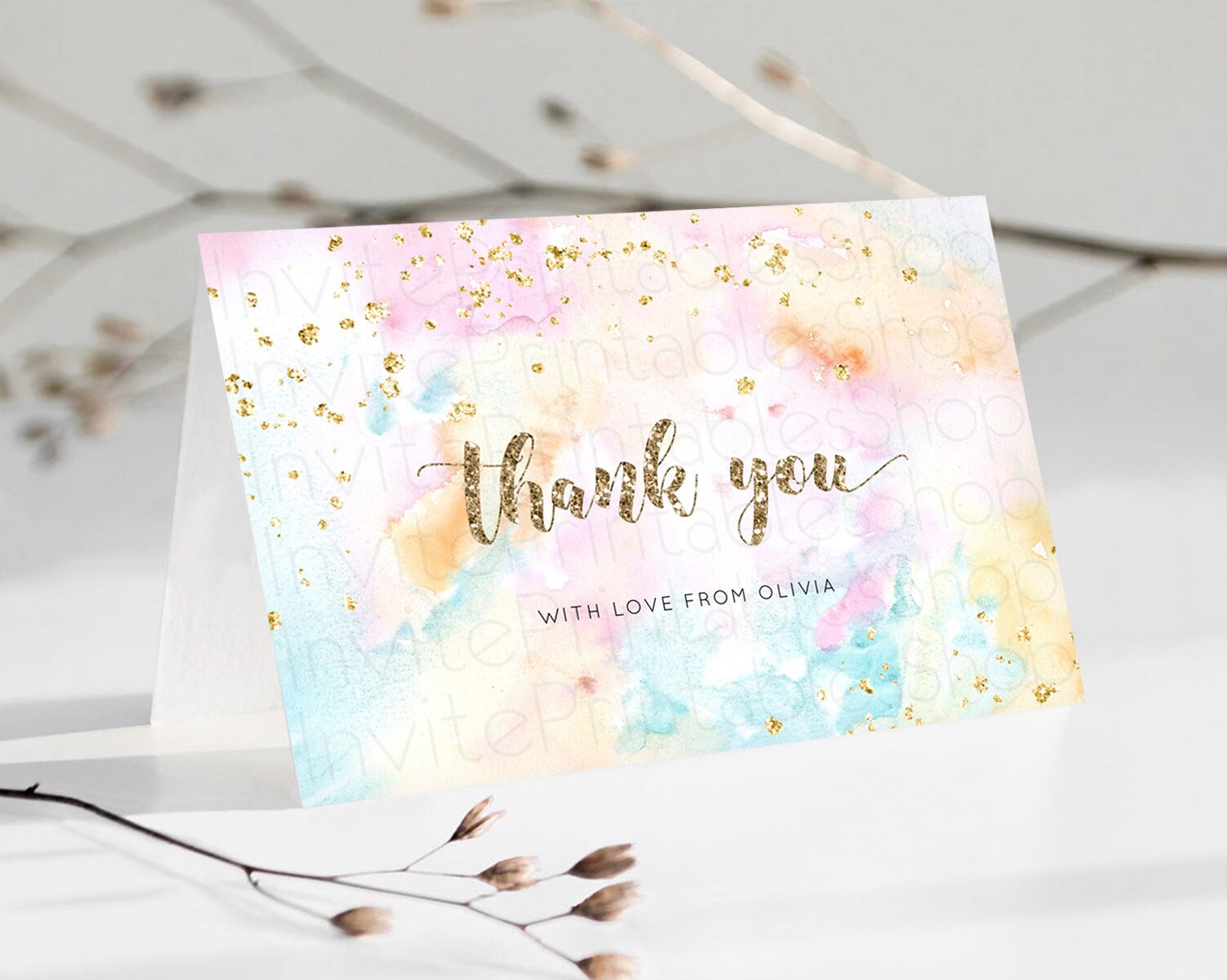 Pastel Thank You Rainbow Thank You Card Colorful Pastel Birthday Thank You Card Confetti Watercolor Pastel Teacher Thank You Cards D10548