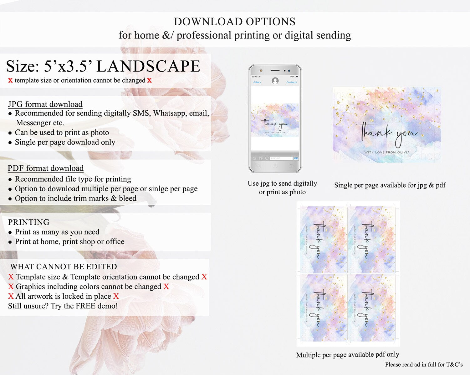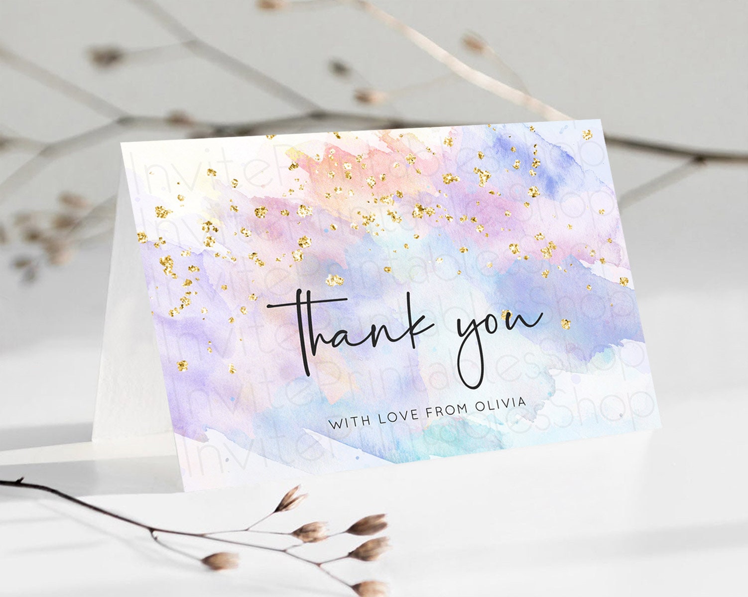 Pastel Thank You Rainbow Thank You Card Colorful Pastel Birthday Thank You Card Confetti Watercolor Pastel Teacher Thank You Cards D10585