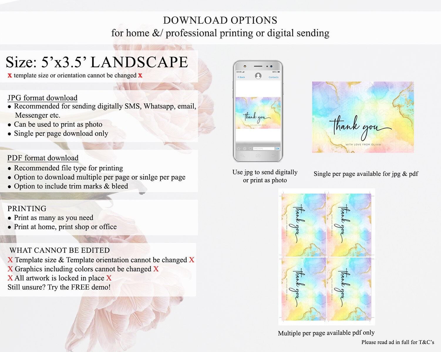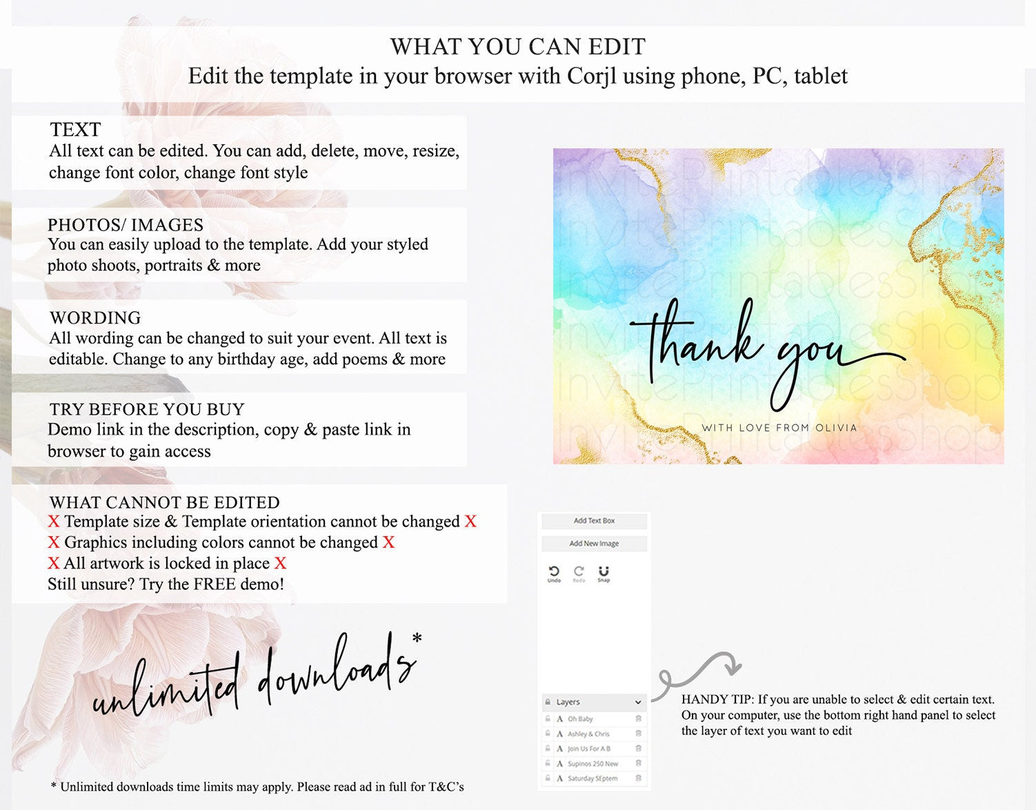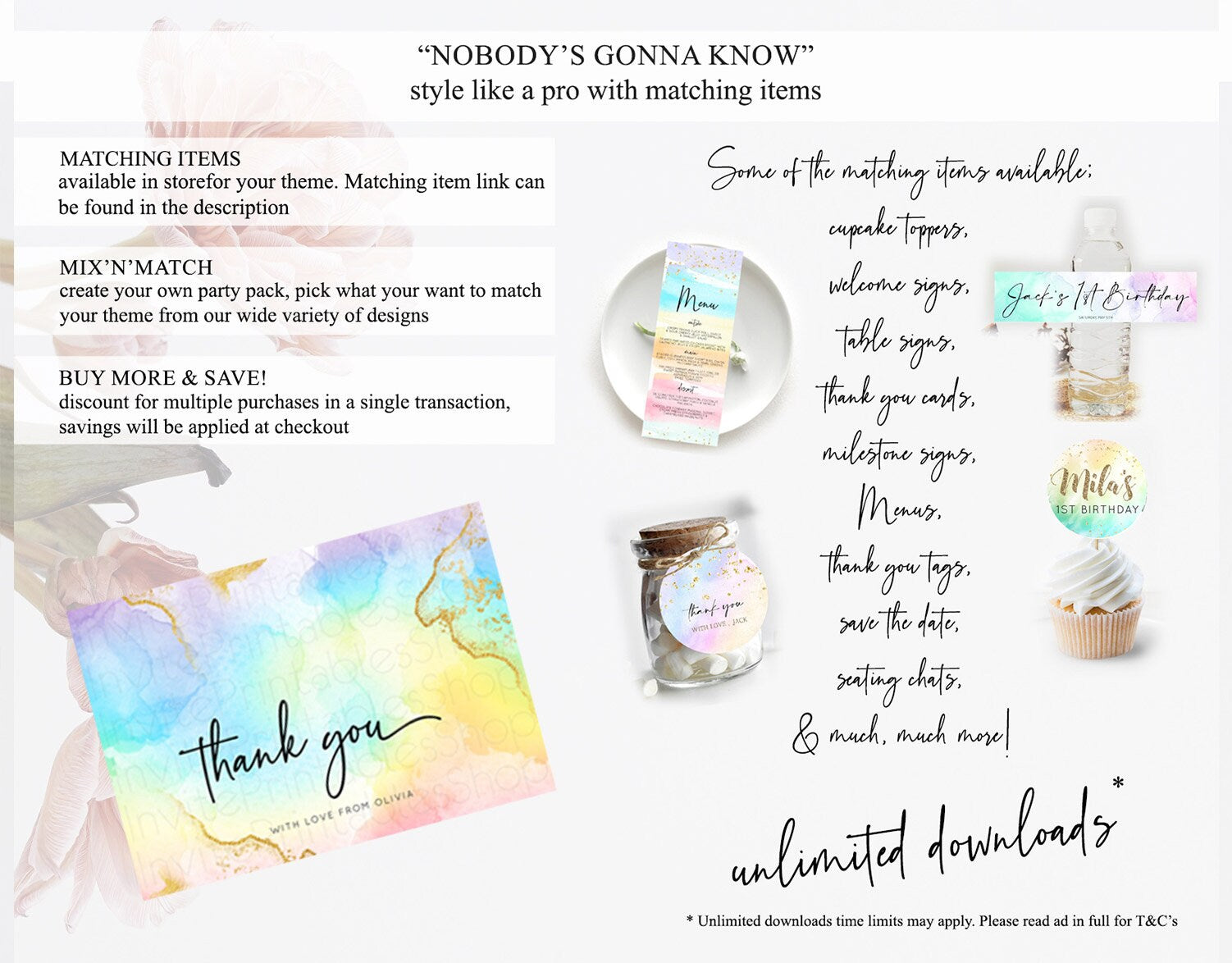 Pastel Thank You Rainbow Thank You Card Colorful Pastel Birthday Thank You Card Confetti Watercolor Pastel Teacher Thank You Cards D10588