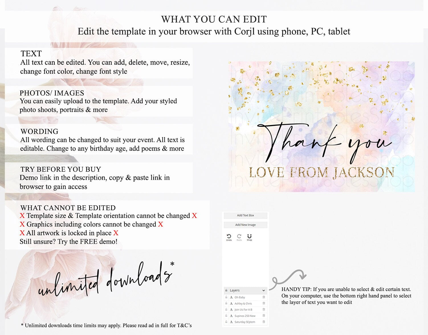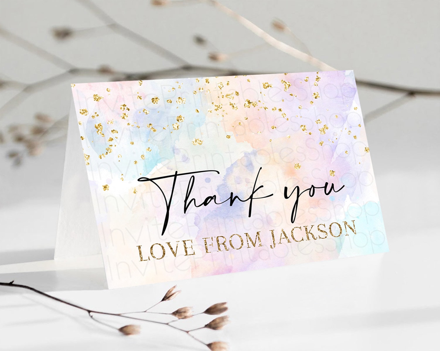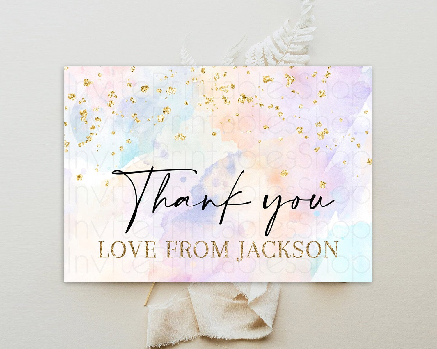 Pastel Thank You Rainbow Thank You Card Colorful Pastel Birthday Thank You Card Confetti Watercolor Pastel Teacher Thank You Cards D10605