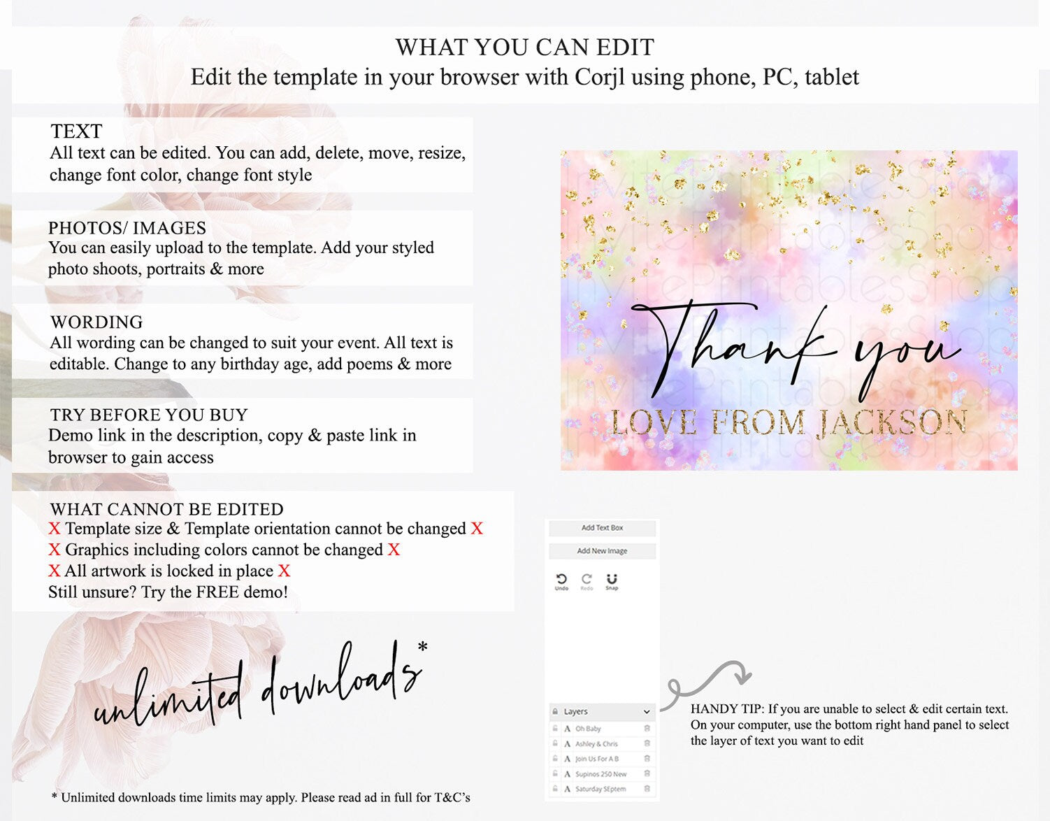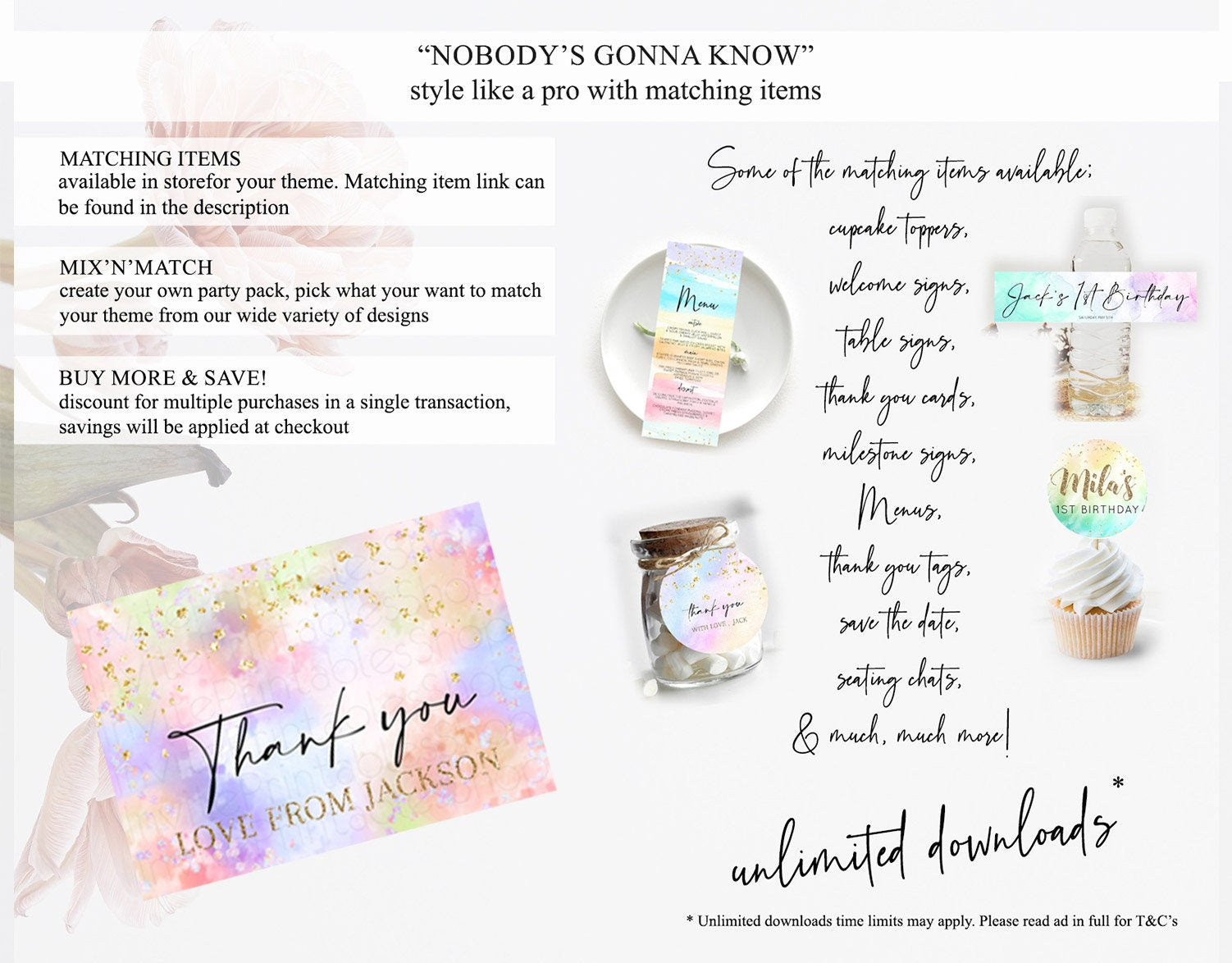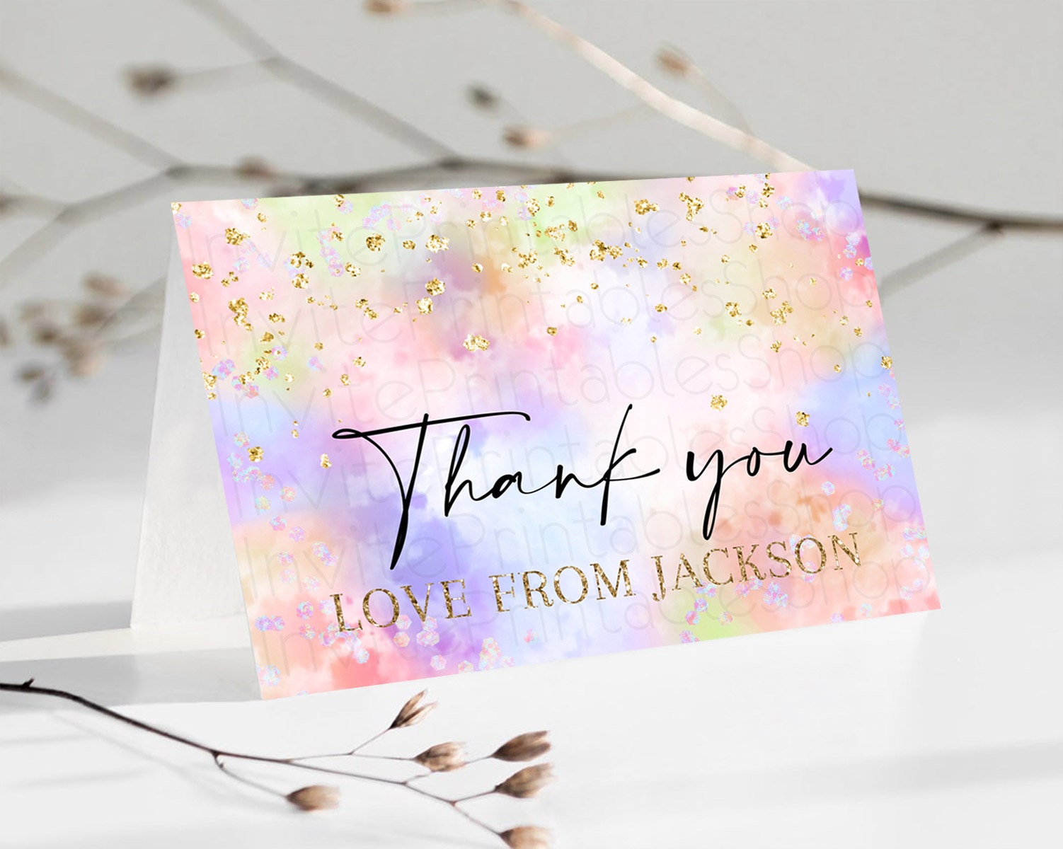 Pastel Thank You Rainbow Thank You Card Colorful Pastel Birthday Thank You Card Confetti Watercolor Pastel Teacher Thank You Cards D10610