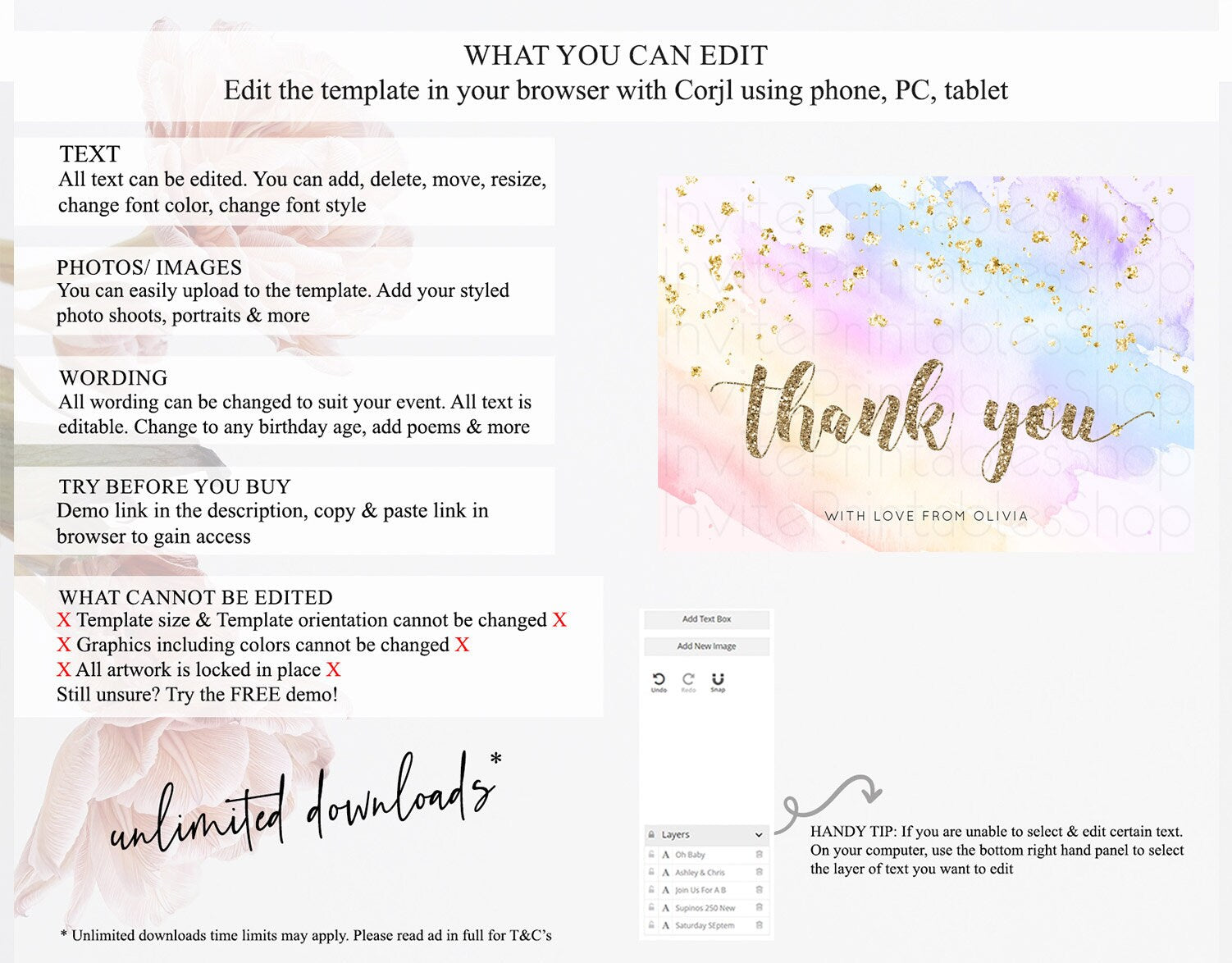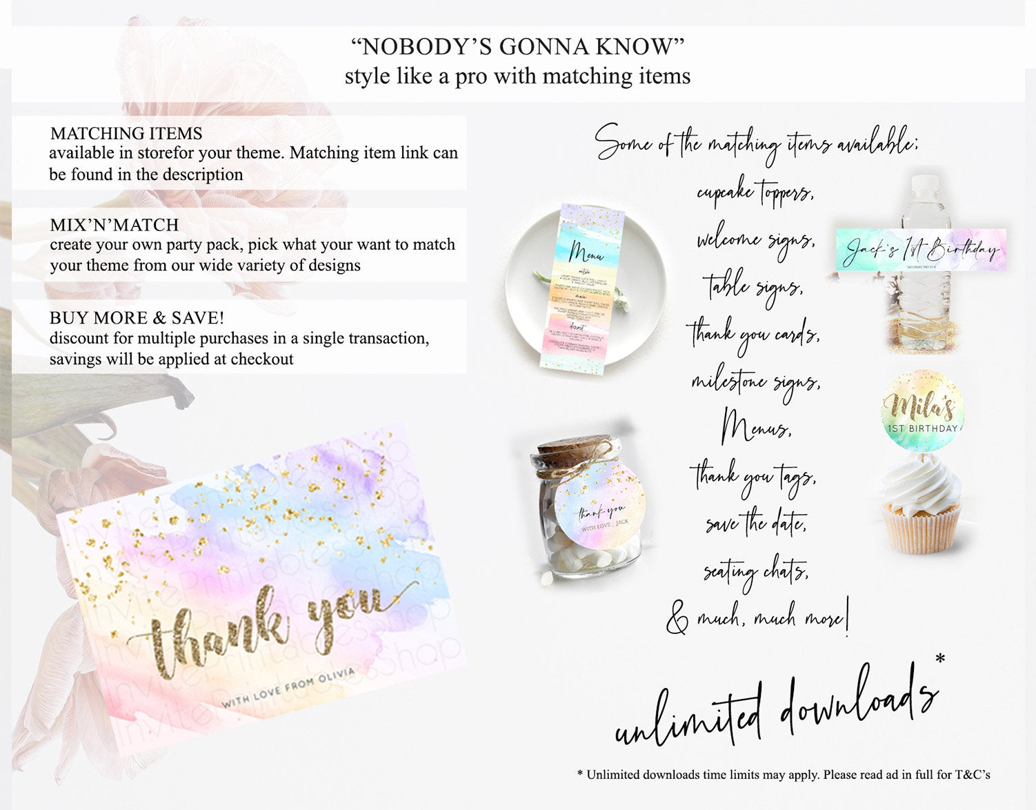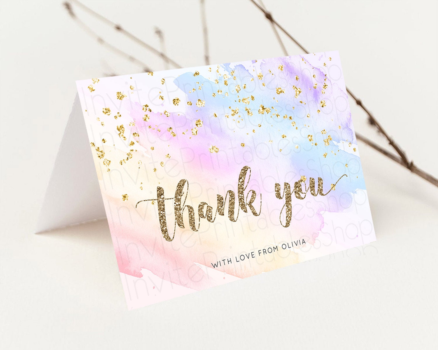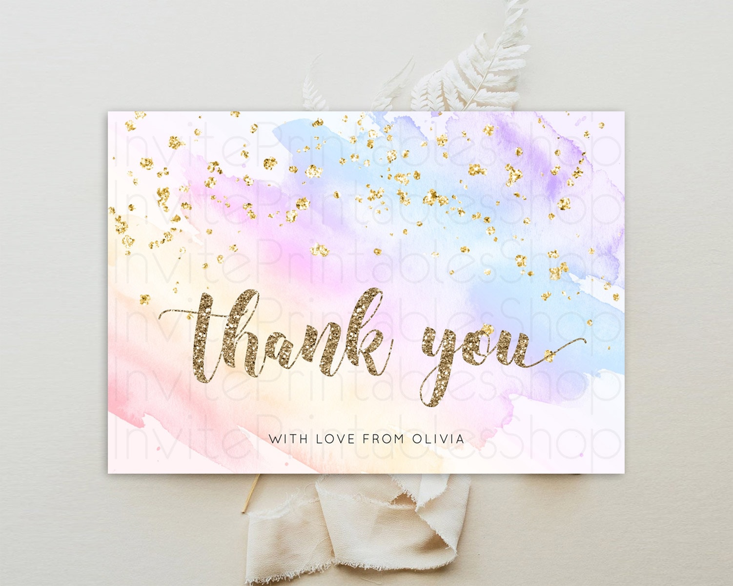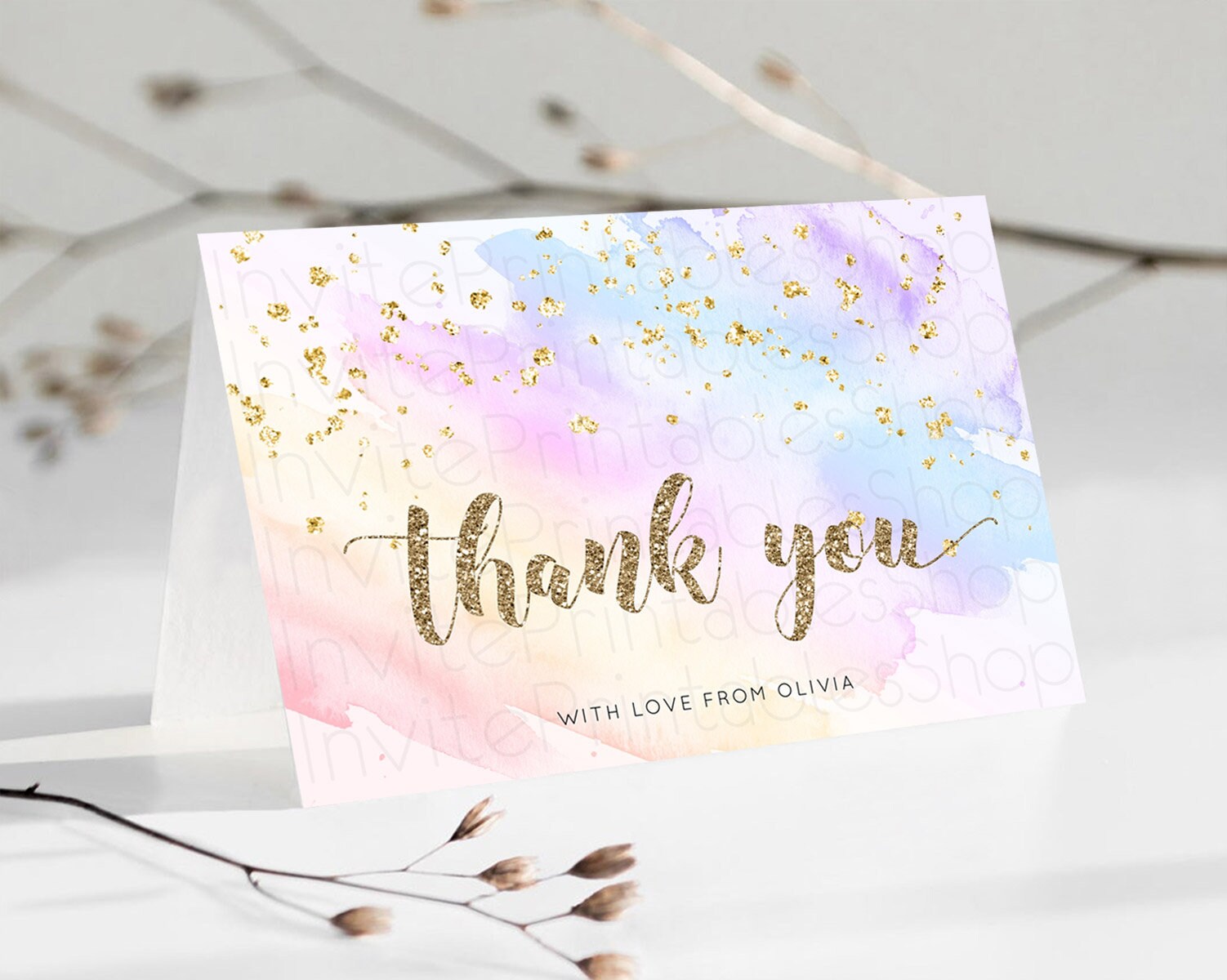 Pastel Thank You Rainbow Thank You Card Colorful Pastel Birthday Thank You Card Confetti Watercolor Pastel Teacher Thank You Cards D10633