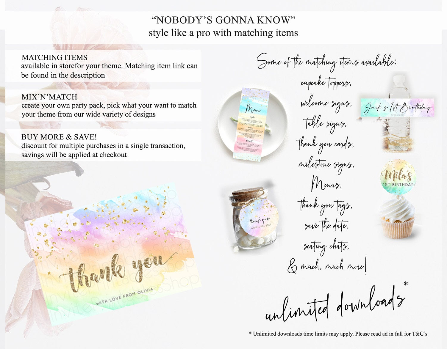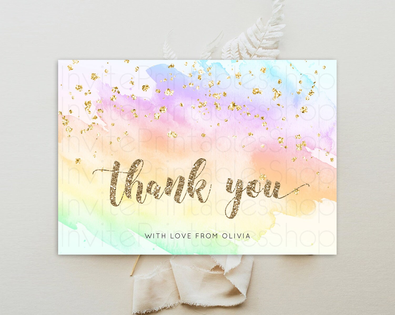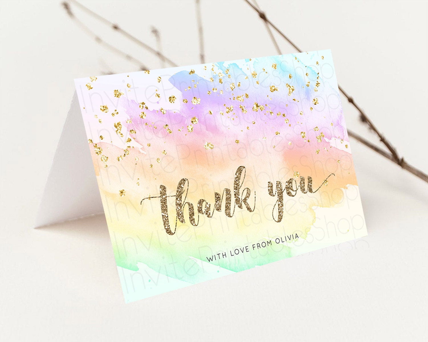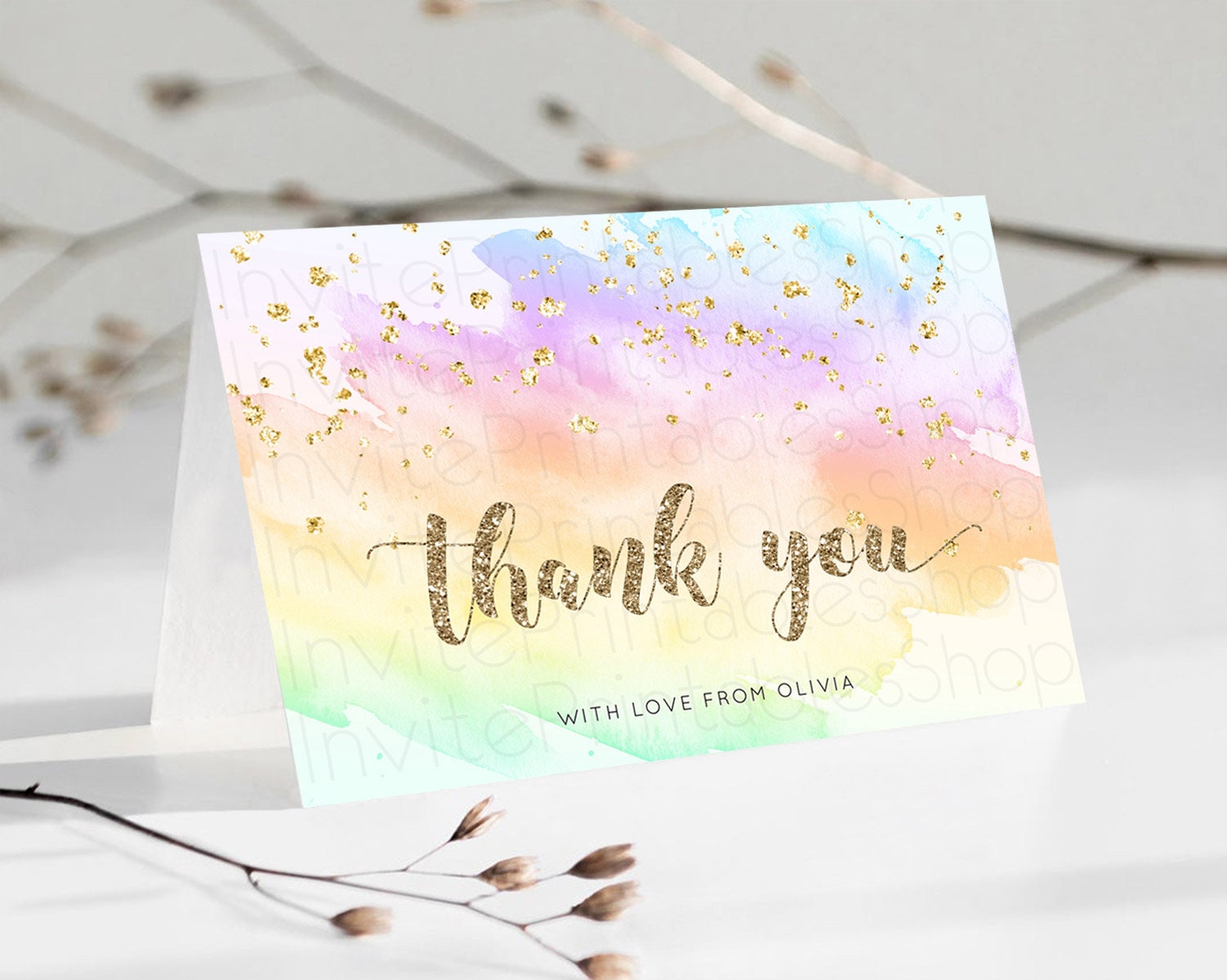 Pastel Thank You Rainbow Thank You Card Colorful Pastel Birthday Thank You Card Confetti Watercolor Pastel Teacher Thank You Cards D10643
