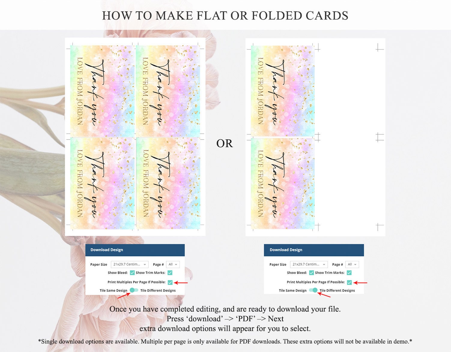 • Custom changes to artwork are not provided on existing templates.