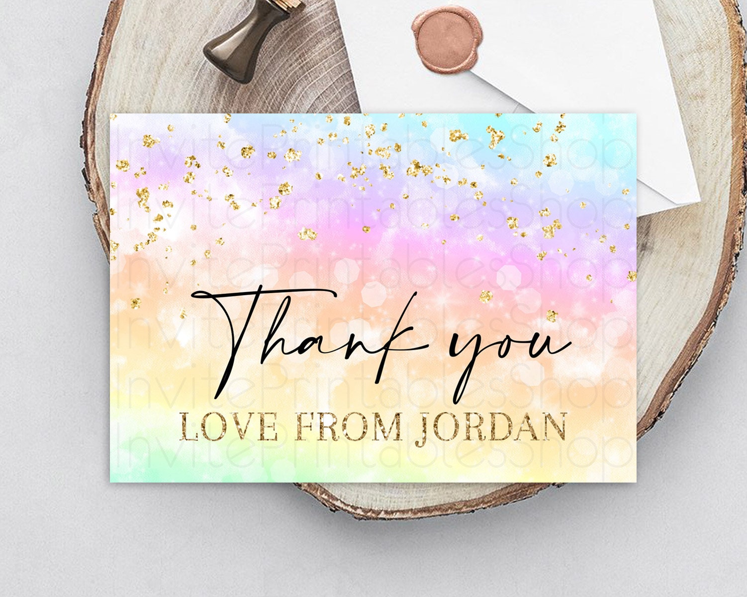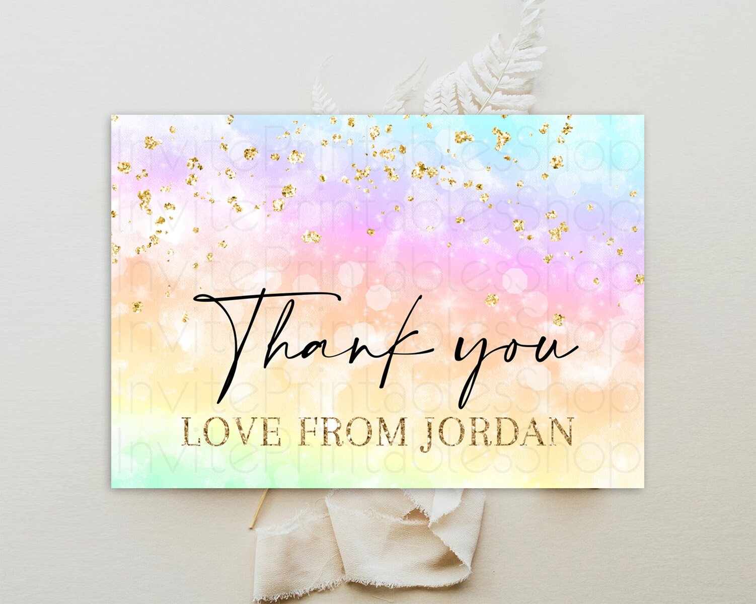 Pastel Thank You Rainbow Thank You Card Colorful Pastel Birthday Thank You Card Confetti Watercolor Pastel Teacher Thank You Cards D10647
