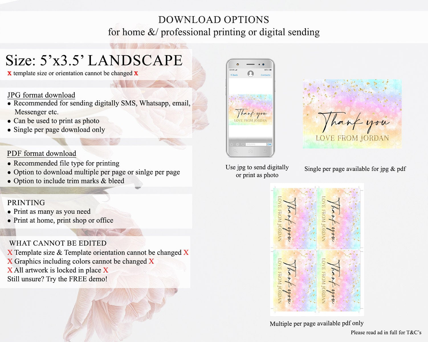 • Template size & orientation cannot be changed. Please use the demo link to confirm this product suits your needs.