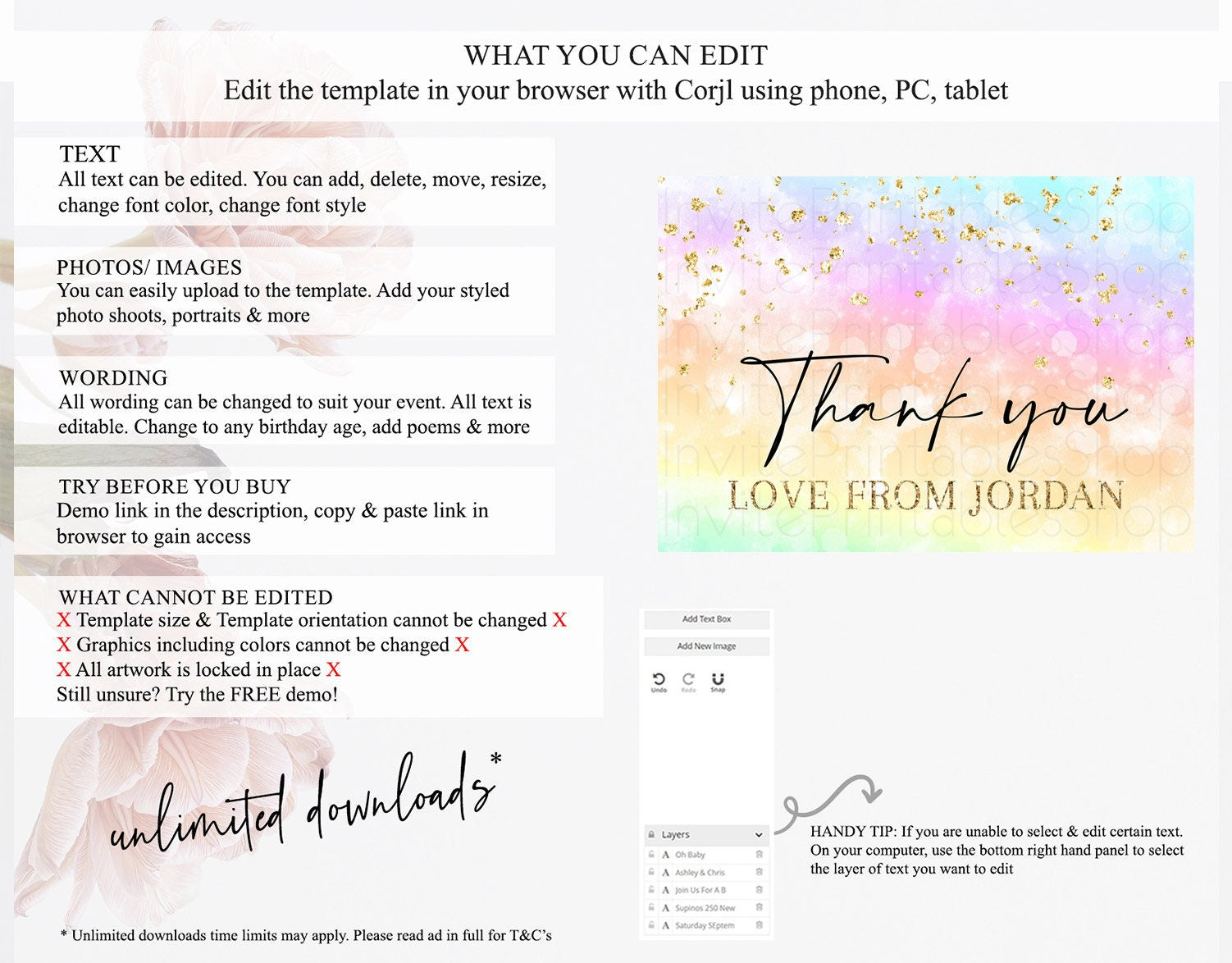 • After purchase, Corjl emails your editing link. Allow up to 15 minutes for delivery.