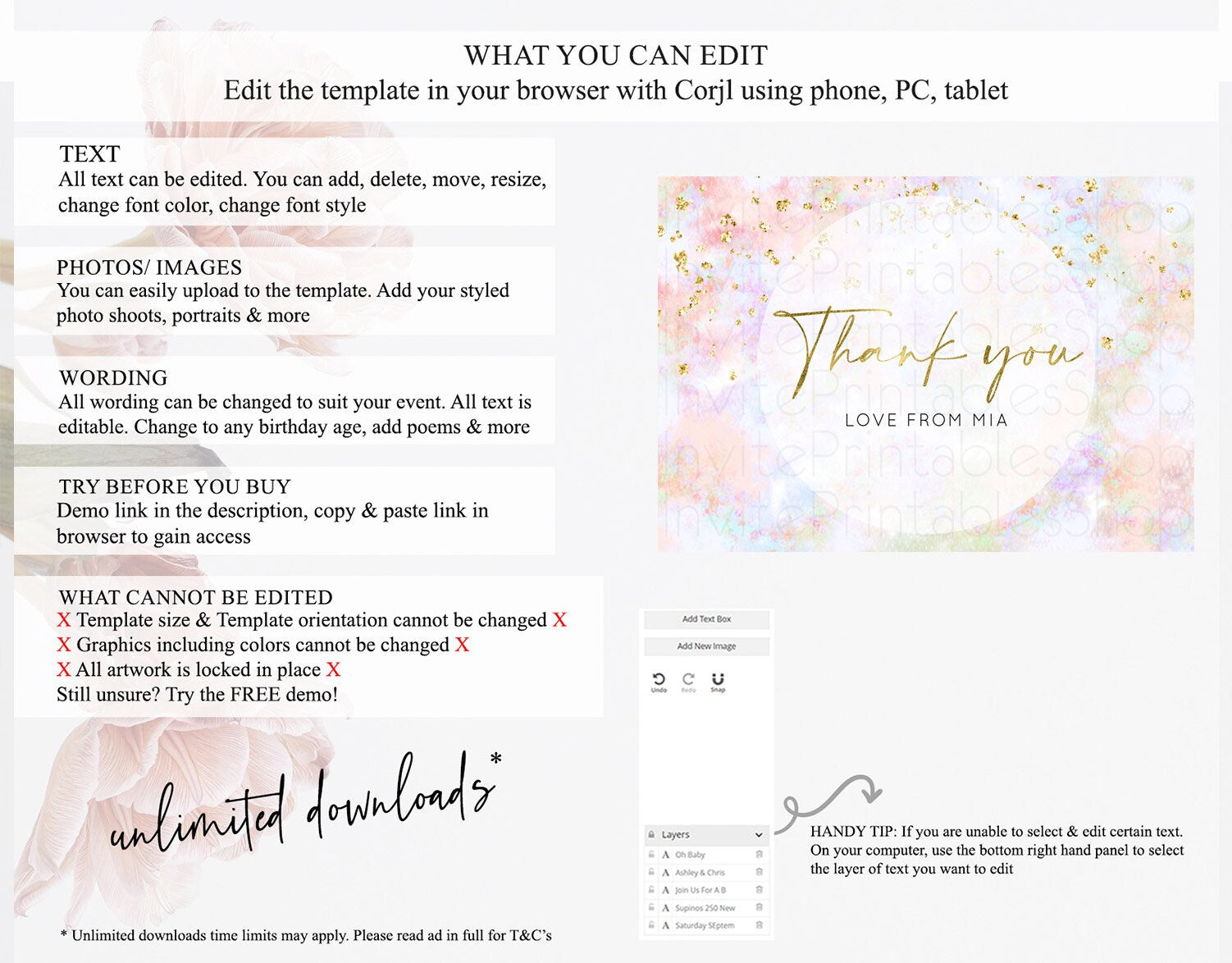 • After purchase, Corjl emails your editing link. Allow up to 15 minutes for delivery.