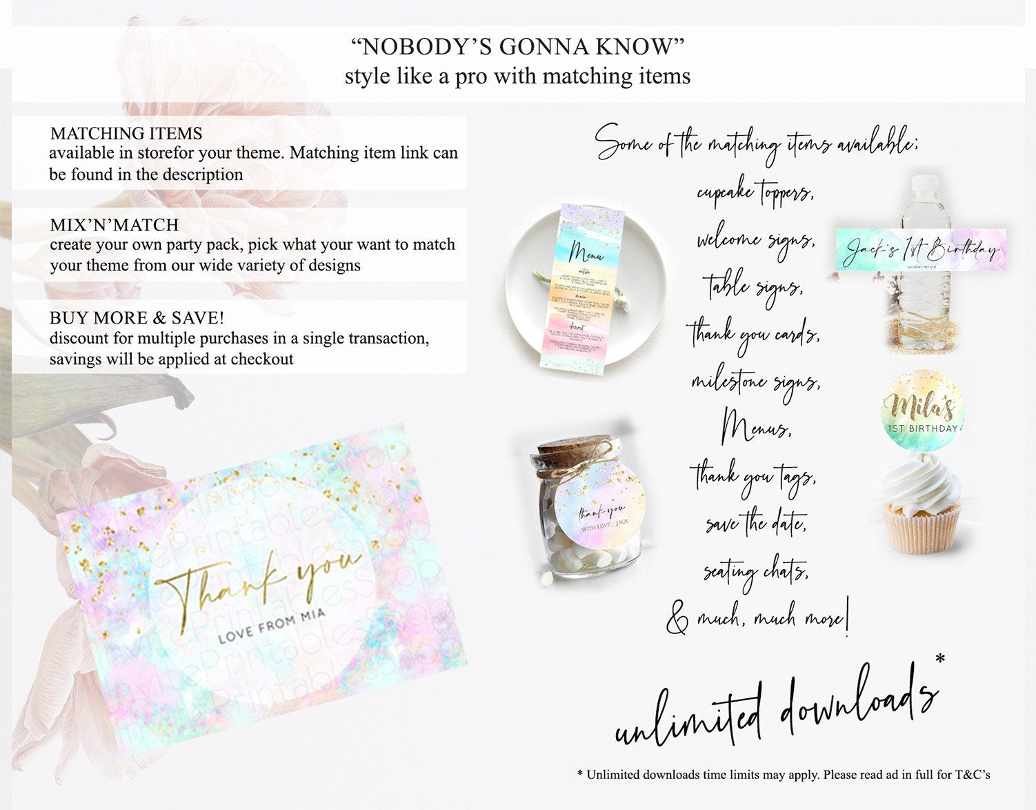 Pastel Thank You Rainbow Thank You Card Colorful Pastel Birthday Thank You Card Confetti Watercolor Pastel Teacher Thank You Cards D10652