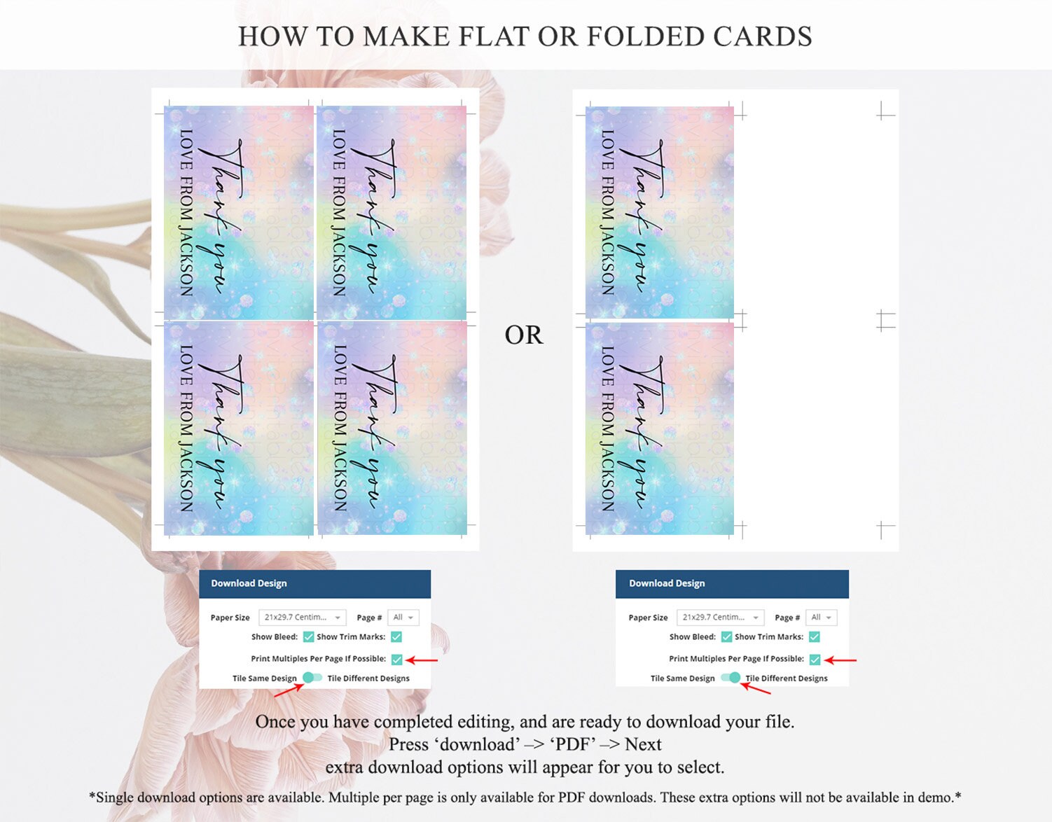• Custom changes to artwork are not provided on existing templates.