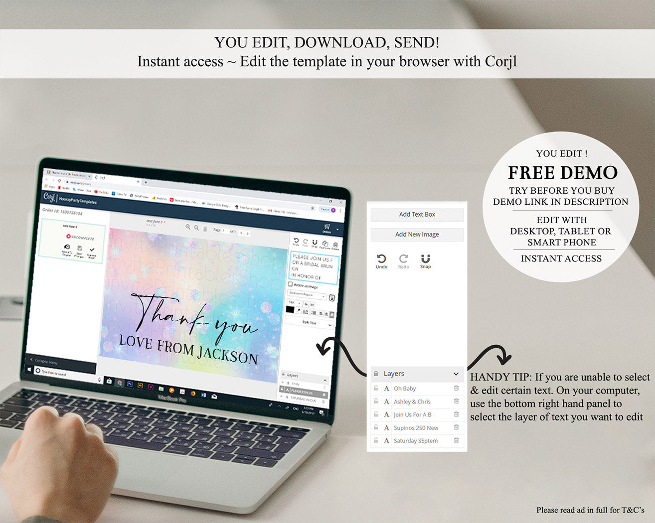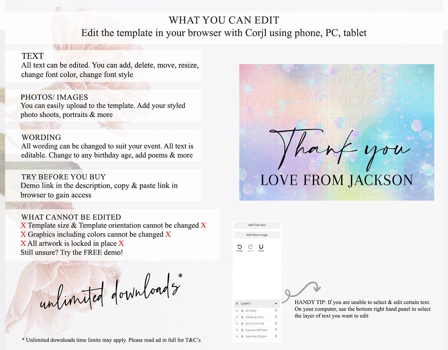 • After purchase, Corjl emails your editing link. Allow up to 15 minutes for delivery.