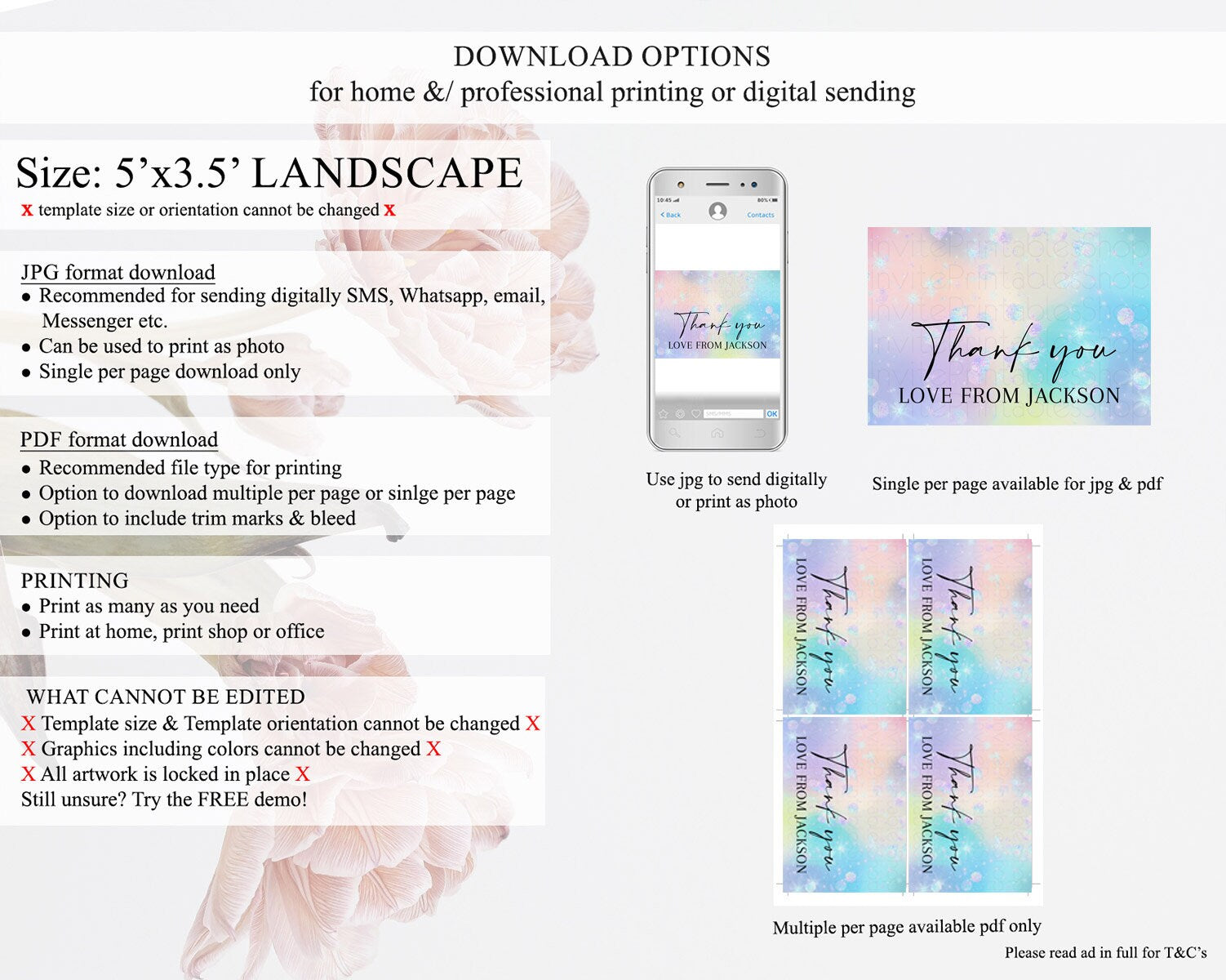 • Template size & orientation cannot be changed. Please use the demo link to confirm this product suits your needs.